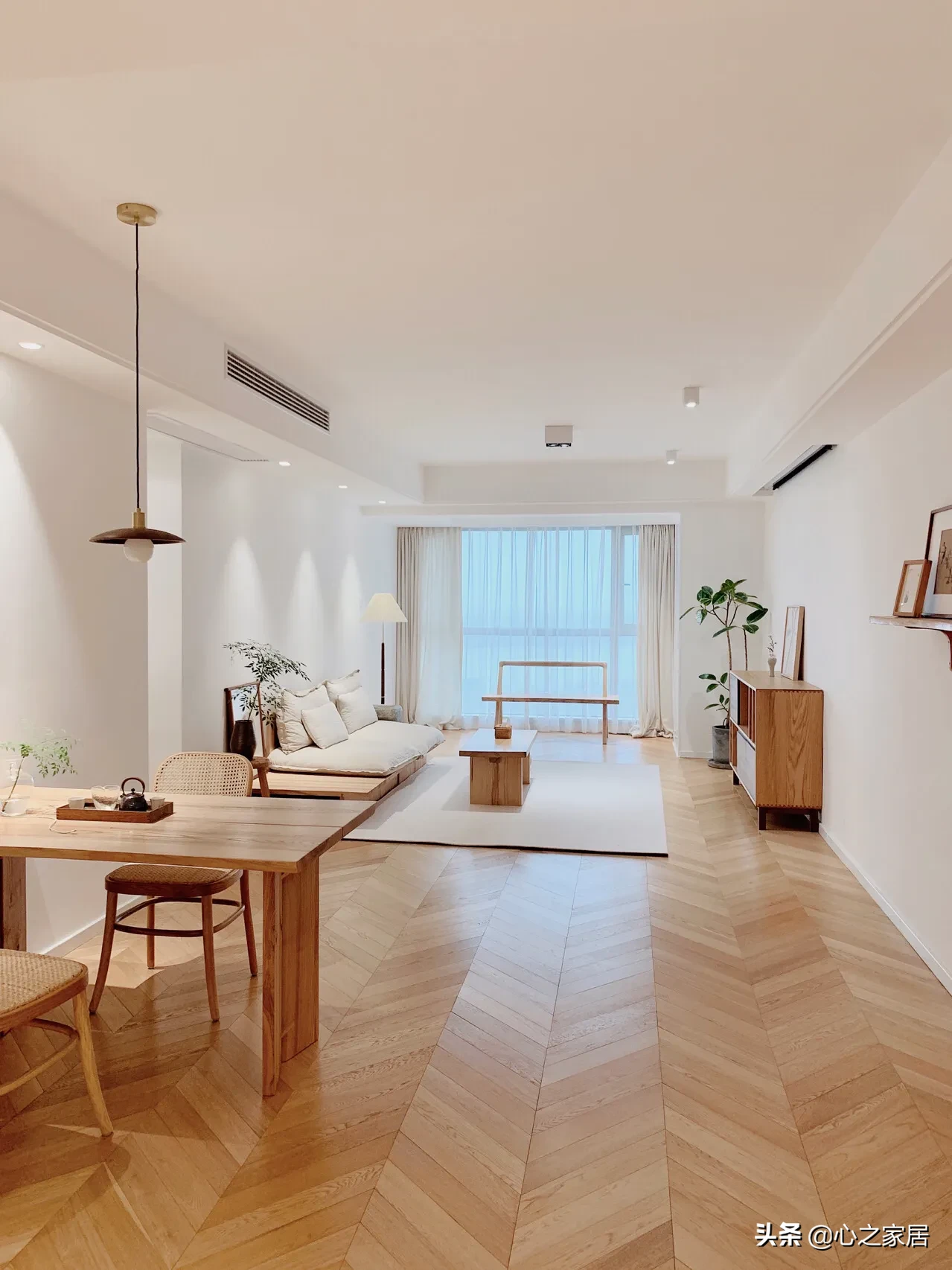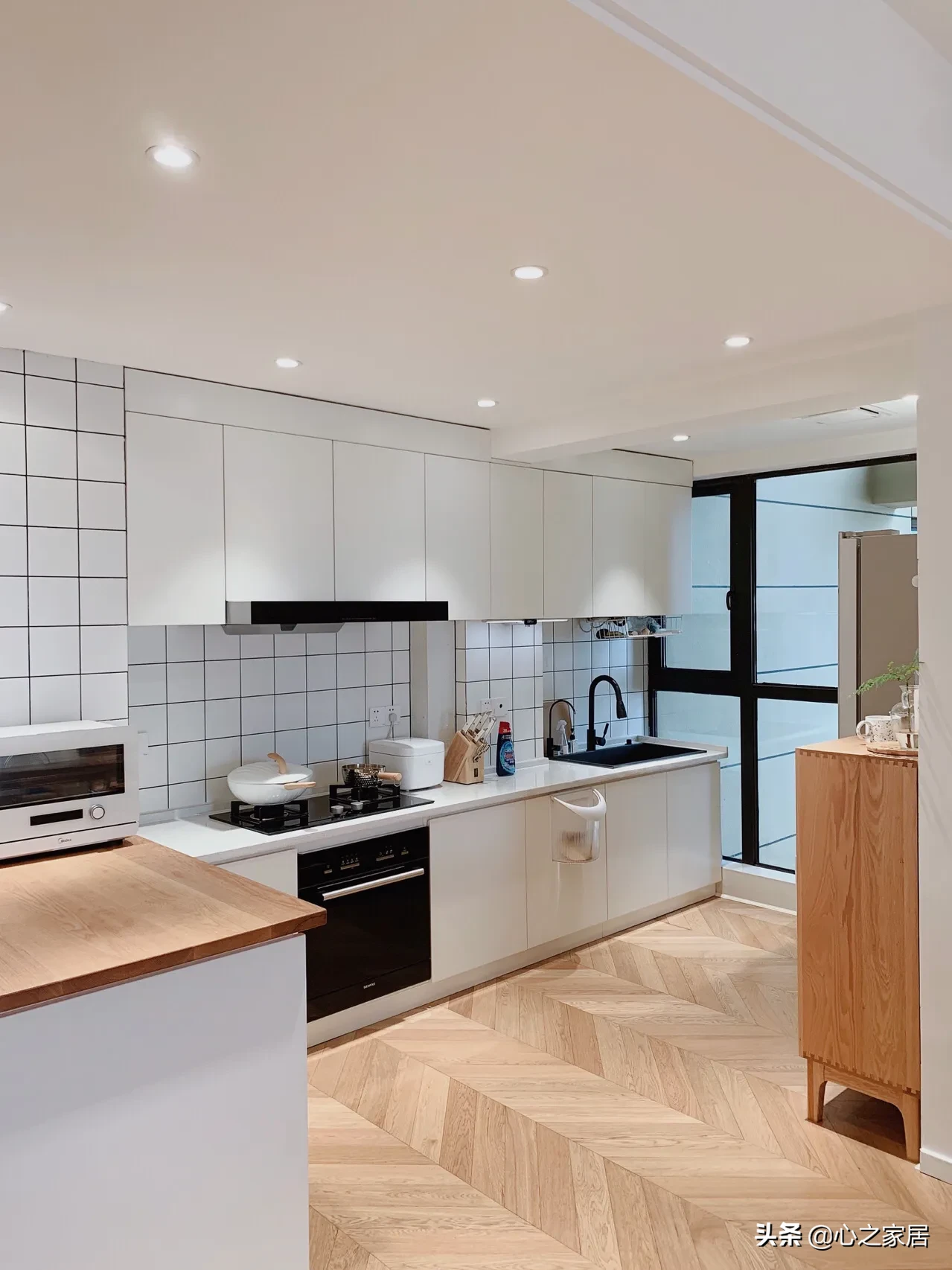 90㎡原木家装设计,给人一种治愈系的家居感觉。整个家居效果简单清爽,没有什么复杂的地方,进门就是开放式的厨房,L型布局大气时尚,橱柜都是哑光烤漆平板柜门,简约暗拉槽设计,完整美观,使用起来也安全方便。最里面的大落地窗让厨房也有充足的采光,门口的吧台设计的稍微高一些宽一些,收纳效果更强一些,两面都能收纳,尺寸170cm✖️90cm✖️80cm,台面是红橡木的,厚3cm。餐厅比较简单,由于背靠开放式厨房,所以餐边柜完全可以省略,简约时尚还很节省空间。客厅简约设计但一点都不简单,榻榻米沙发更有窝在被窝里的感觉,无主灯设计,射灯和筒灯完全满足照明需求。电视墙安装了隐藏式幕布,做吊顶时预留了凹槽,电视柜稍微大一点,但不会影响幕布的使用。阳台落地窗设计了阳台柜和一把木制长椅,悠闲惬意。通往卧室的走廊设计了入墙式的储物柜,平板门无把手设计,和墙面完美融合。主卧卫生间改成了衣帽间,开放式的衣帽柜方便实用。次卧拥有一个小阳台,依然设计了阳台柜,没有选用飘窗,也是放置了一把长椅,更显灵活精致,空间感更强。次卧的通顶衣柜和走廊储物柜款式一样,柜门直接到顶,大气完整时尚美观。卫生间设计了浴缸,旁边有壁龛收纳空间,整个卫生间设计的时尚有情调。全部家装效果花费30万,虽然有点小贵,但很值,这样的家居环境,怎么住都住不够。#春日花样生活# #图文创作打卡挑战活动#