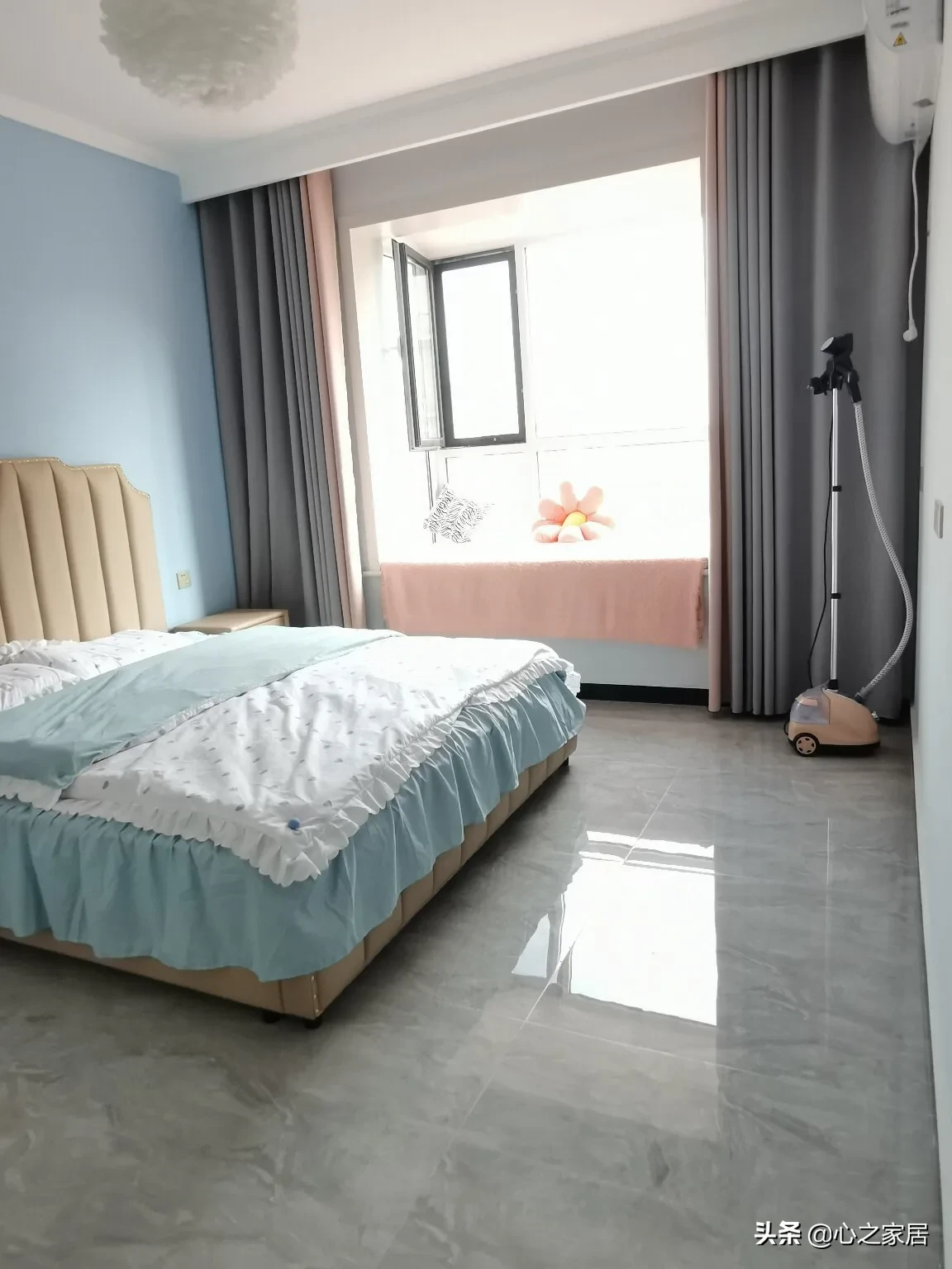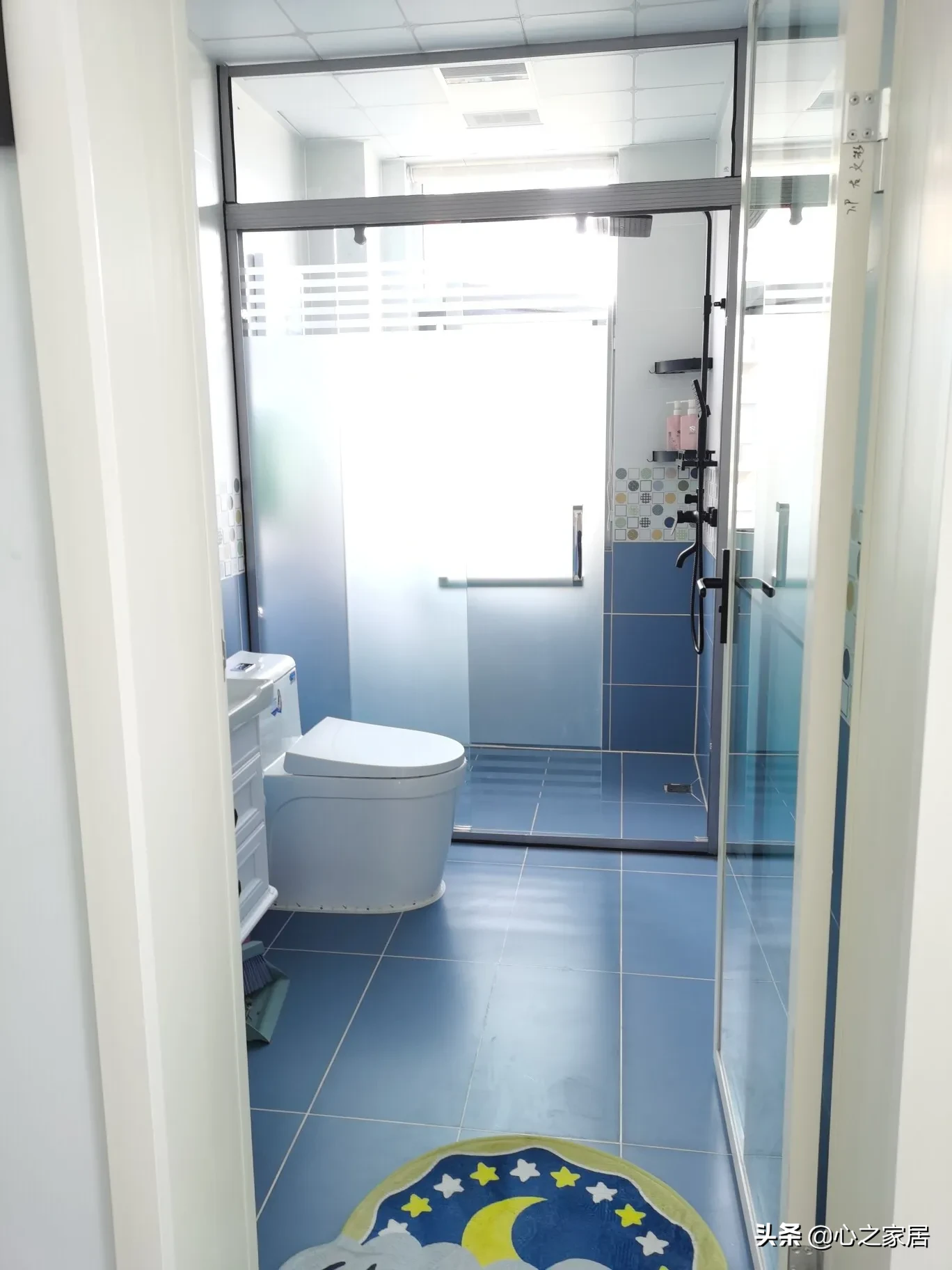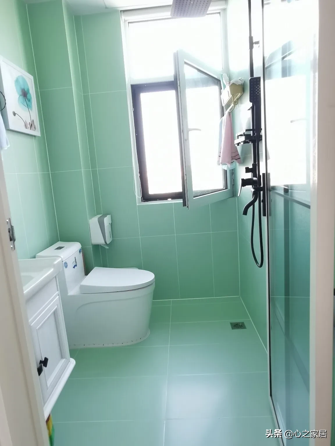 次卧蓝色背景墙,也是唯一拥有飘窗的房间。榻榻米房间组合柜全屋最实用的房间,全屋通铺了灰色地砖,颜色不是很深,和亮丽的墙面色彩搭配的很自然,一点都不会显得暗淡。全屋最为特别的是两个卫生间,绝对的时尚清新,都是地砖上墙的设计,一个绿色空间,一个蓝色国度,都给人一种童话般的感觉,客卫的淋浴间做了到顶的隔断,使用起来更加方便。如此的家装设计,让家居生活一点都不会感觉单调枯燥。#春日花样生活# #图文创作打卡挑战活动#