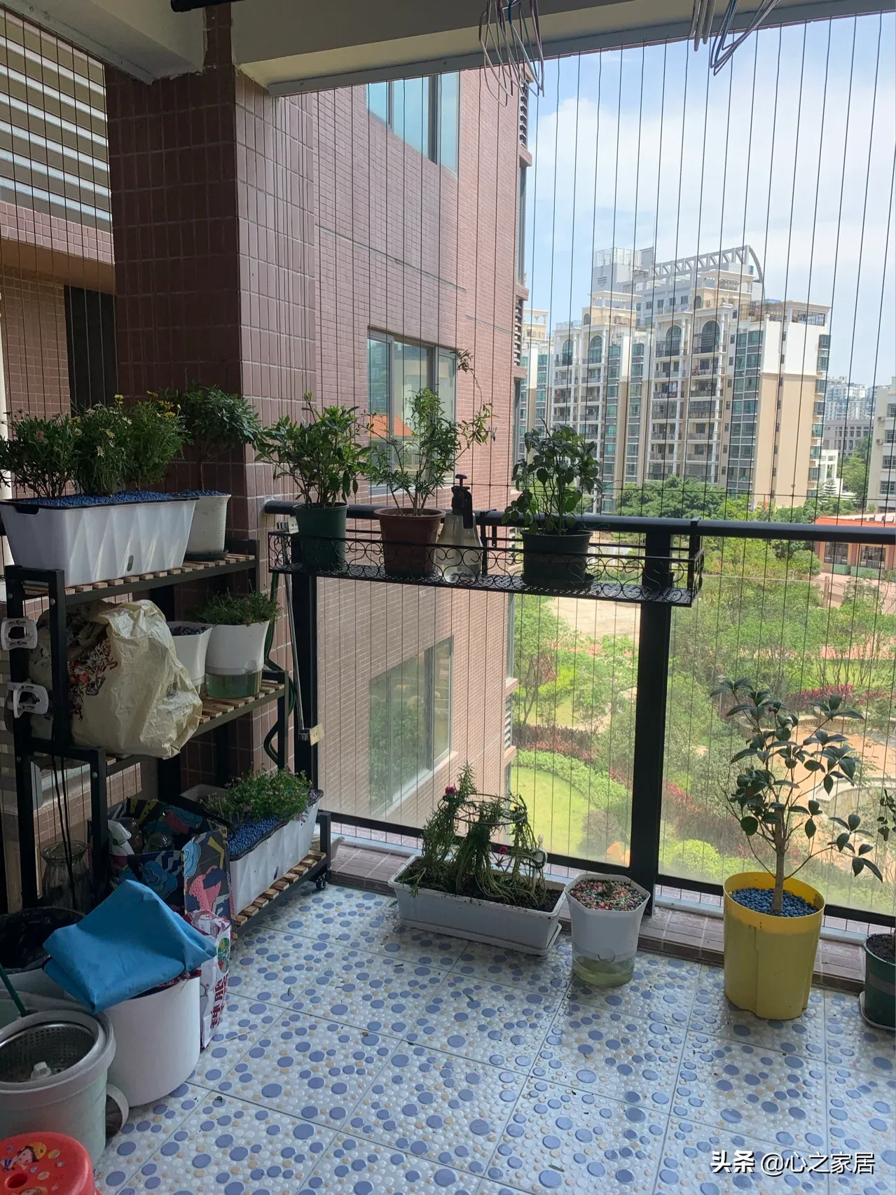 可客厅不是很大,墙壁用了灰色乳胶漆,电视背景墙做了石膏线和金属条装饰,简约时尚。茶几搭配了四个小矮凳,平时收在茶几下面也比较方便,需要的时候拿出来,人坐在上面也好,脚搭在上面也行。阳台是开放式的,空气流通好,设计成一个阳台花园,增添一下房子的绿化,给家带来一些清新和活力。