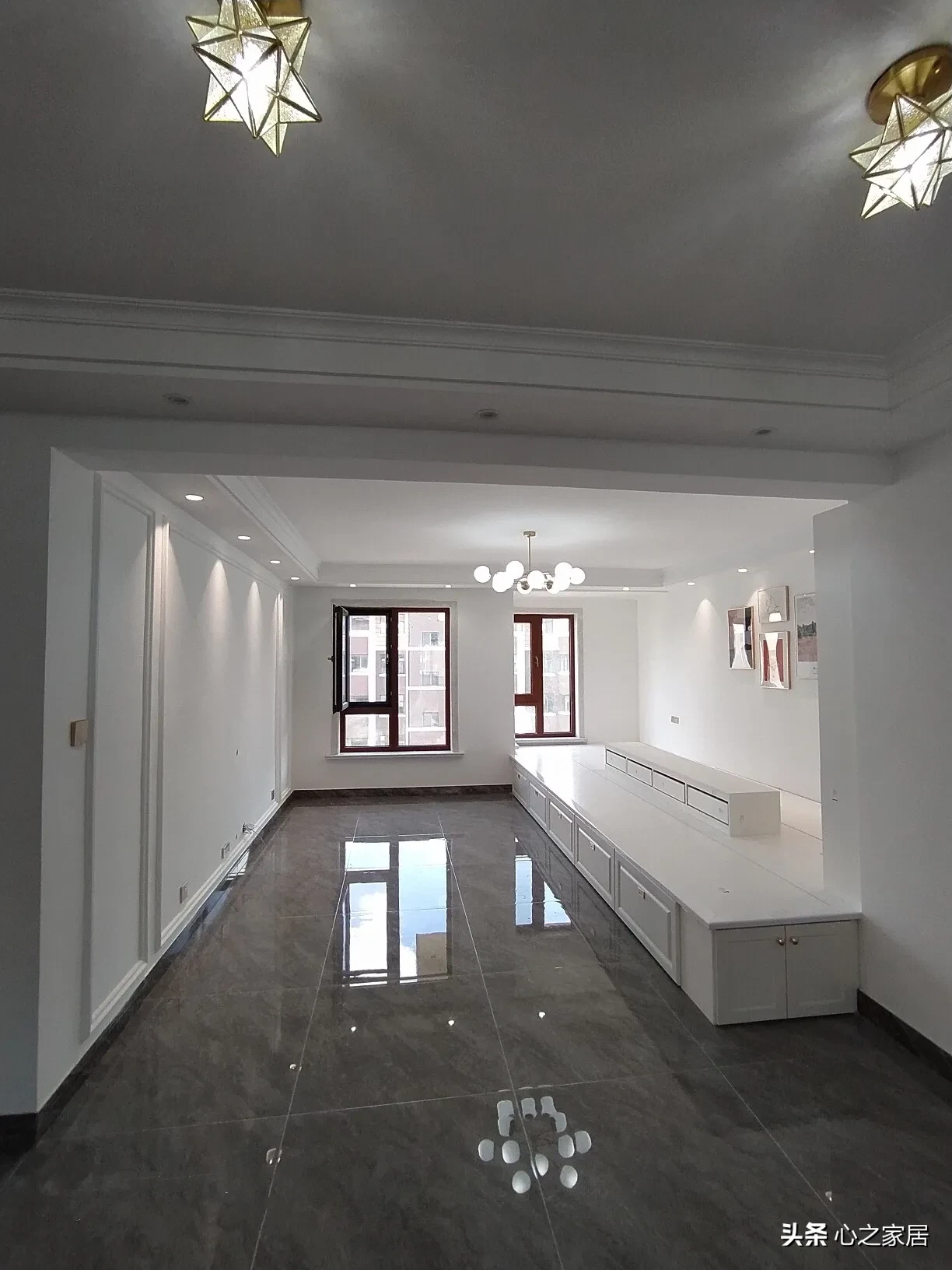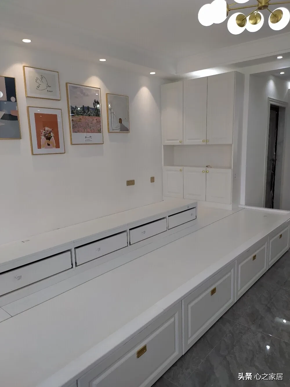 导语:89㎡的两居室,房子不算大,为了增加收纳空间,别出心裁的将客厅设计成了榻榻米,虽然看着有点别扭,但实用性确实非常棒,弥补了整个房子收纳空间不足的尴尬,特别的家装设计带来不一样的家居体验。客厅整体设计比较简单,电视背景墙做的简单的石膏线背景墙,简约大气,墙壁都是大白色,干净整洁,无阳台客厅直接把榻榻米做到窗户边,显得特别宽大,墙边还设计了收纳柜,榻榻米上面放置的是电视柜,还…