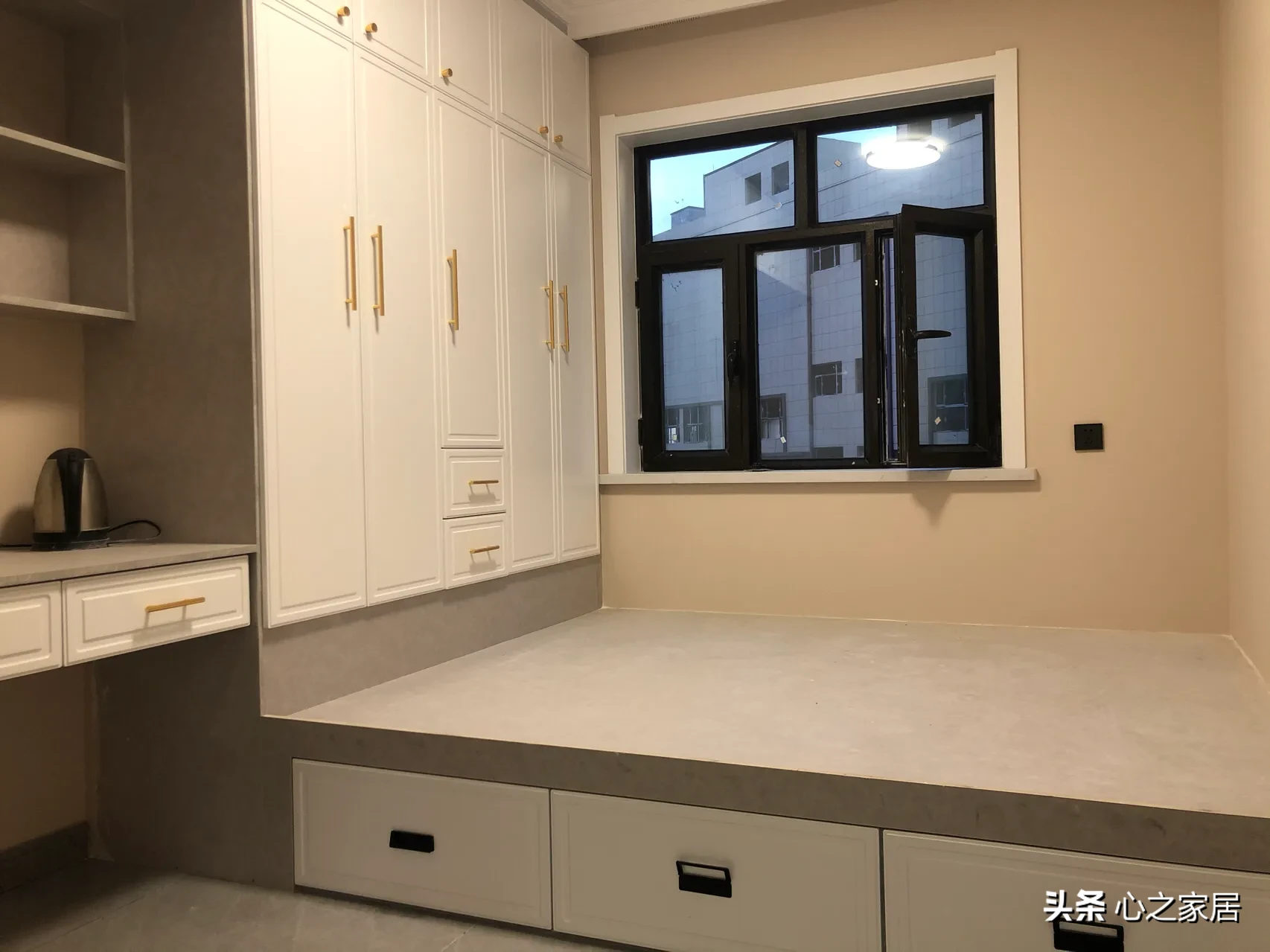 主卧选择了粉色背景墙,其他墙壁是奶咖色的,衣柜➕书桌的设计,对于小户型的主卧来说更加实用,次卧榻榻米组合功能强大的设计,整体榻榻米灰白搭配,和地面的灰色瓷砖很搭配,墙面奶咖色的乳胶漆,缓和一下冷色调的气氛,让房间能够温暖一些。