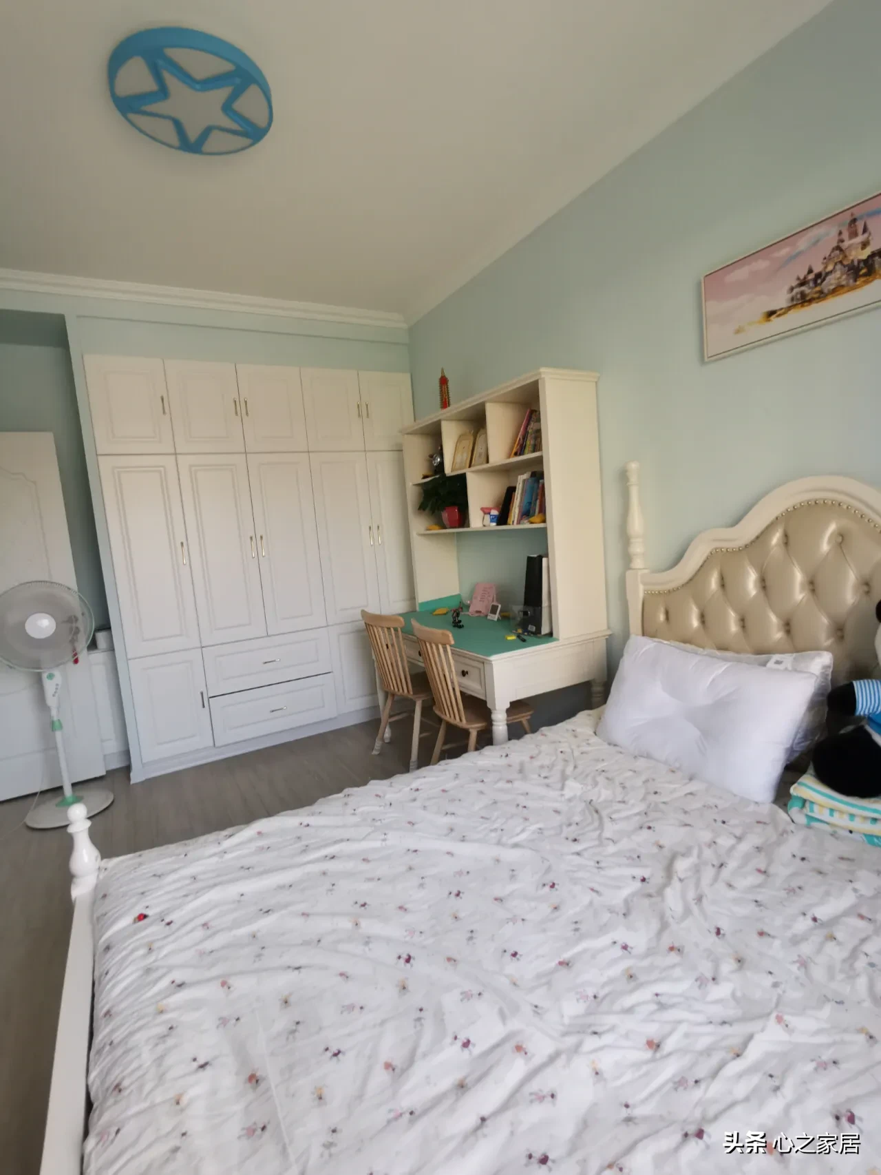 导语:50㎡的老破小学区房花7W进行了改装,没有客厅,进门直接餐厅算是这种房子的特点了,也能忍受,但卫生间的位置实在是很尴尬,在房子正中间的位置,很影响房间的采光效果,为了孩子先将就一下吧。全屋选择了蓝色乳胶漆墙面,让整体风格能够显得清新自然年轻一些,提升一下房子的明亮度,入户门两边分别设计了到顶的储物柜,增加房间的收纳空间,进门右手边的柜子空间利用的最好,挤挨门框,最大限度的保留收纳空间…