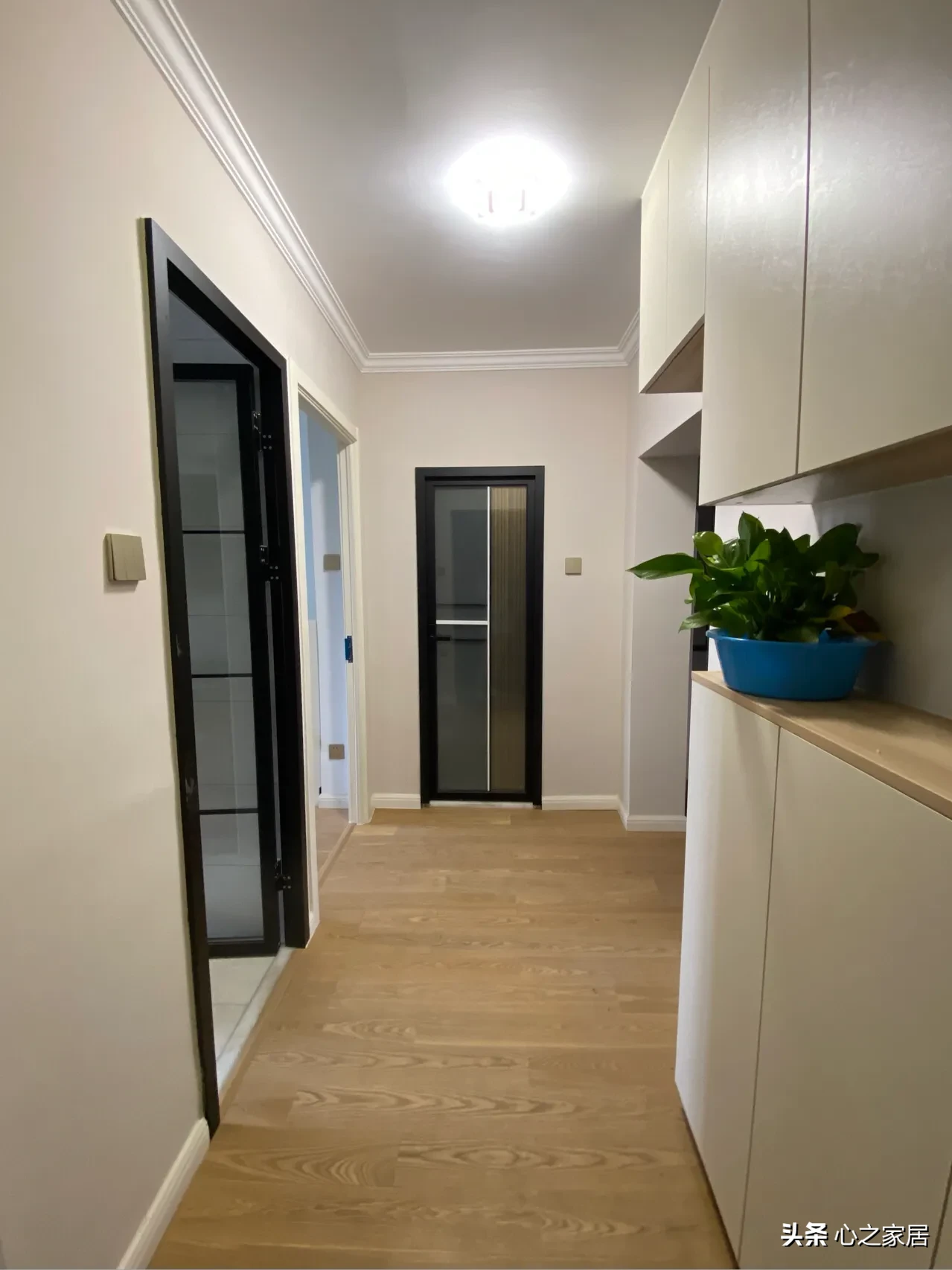 导语:64㎡的老破小套内面积只有48㎡,为了住着舒适一些,花25W进行了改造,最终效果很满意,一家三口住着刚刚好,在魔都能够拥有属于自己的小家,也是一件很幸福的事情。户型是个十字型,进门玄关空间设计了到顶的玄关柜,柜子的风格很简约,白色平板柜门搭配原木色的台面,靠近里面的位置设计了挂衣区,柜门无把手设计,让整体空间显得更完整一些,小空间把手太多会感觉很碍眼。…