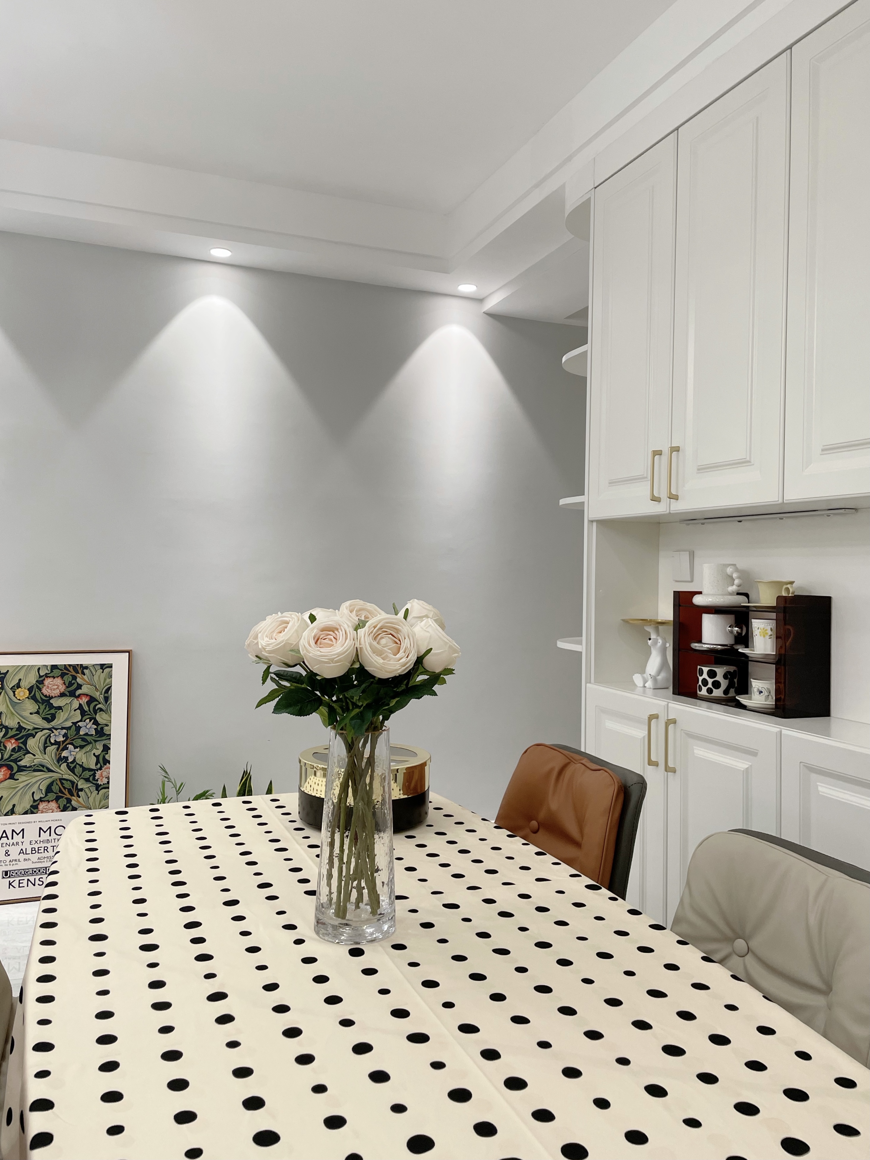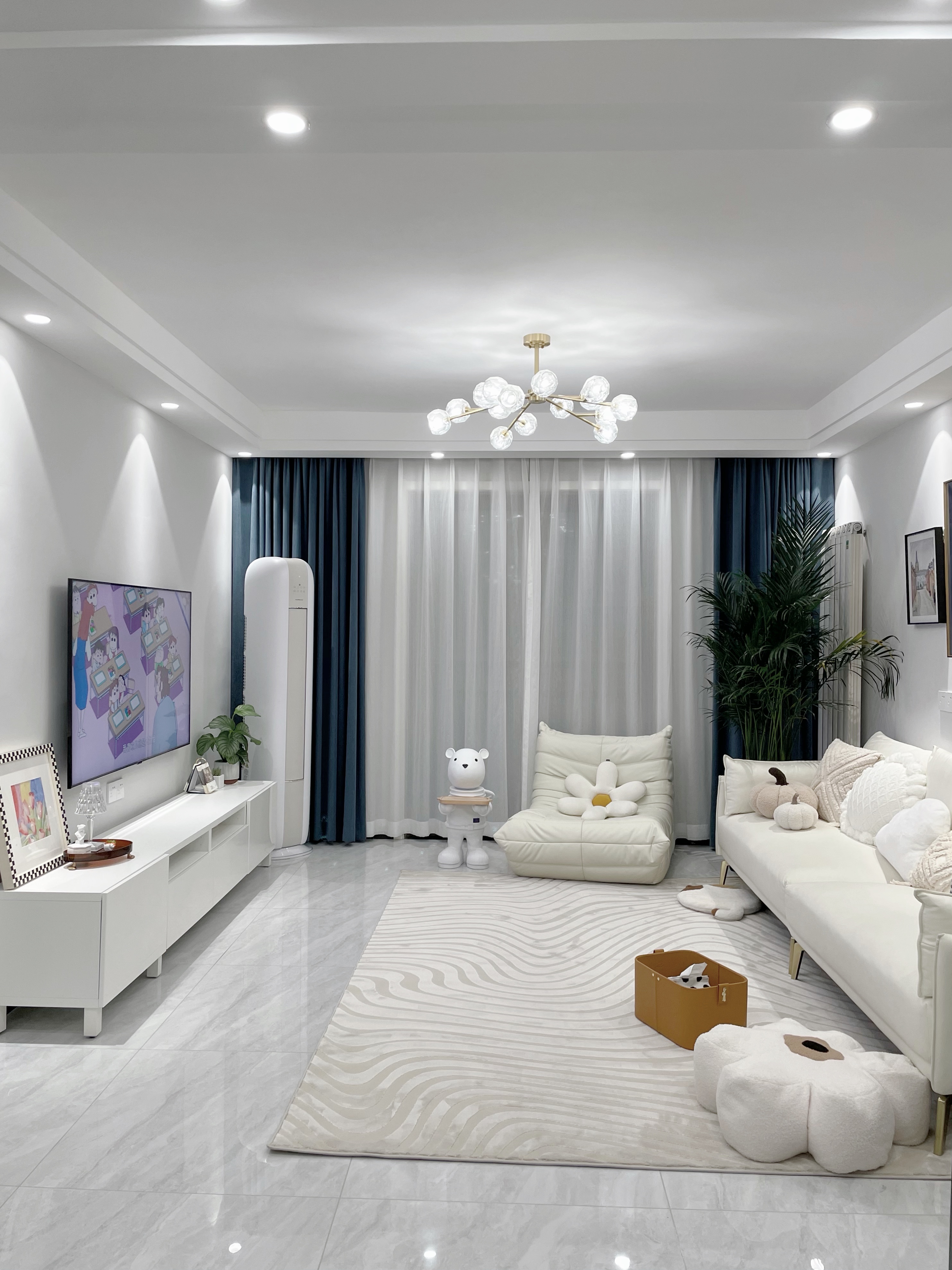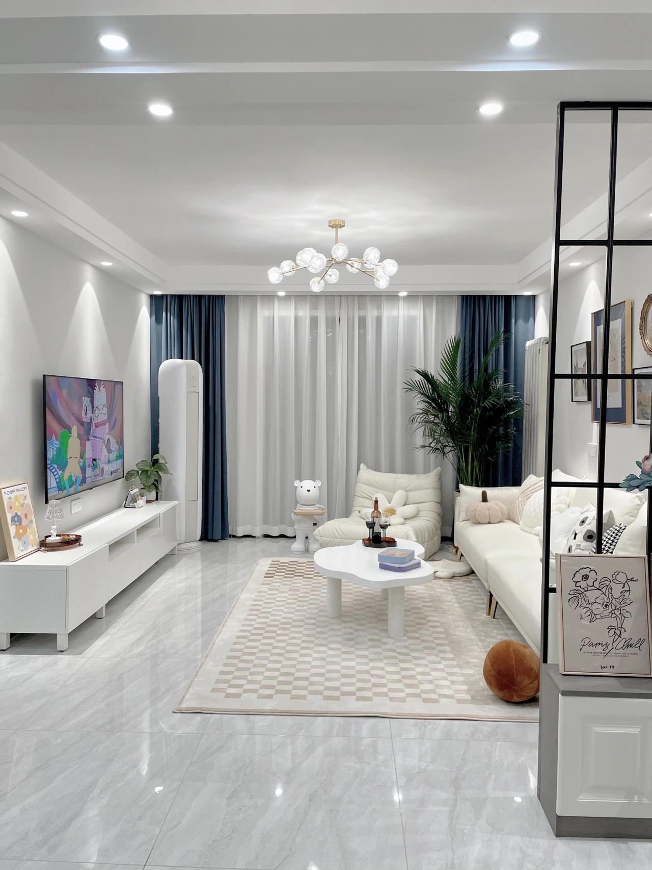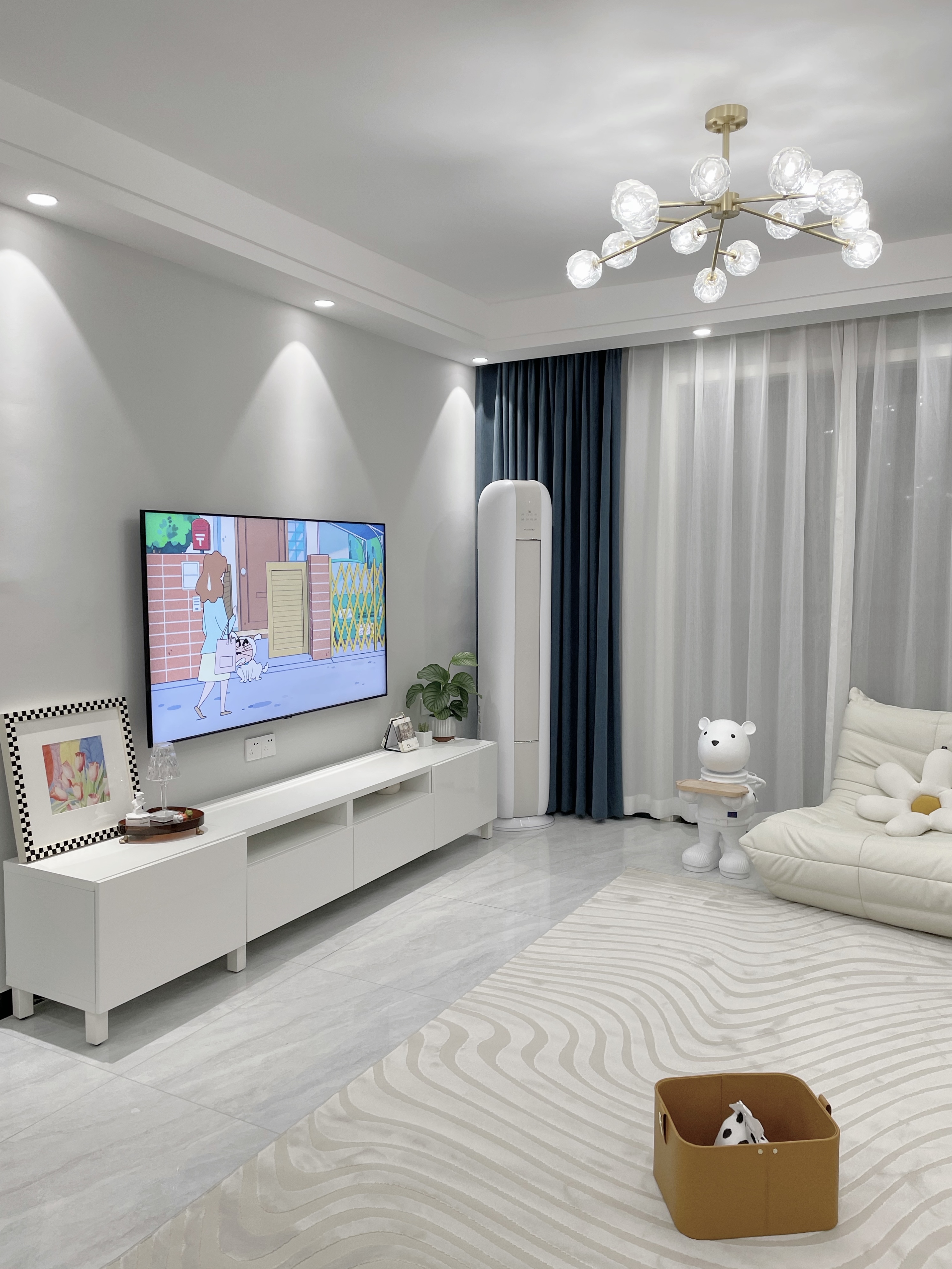 客餐厅通刷浅灰色乳胶漆,颜色高级不压抑,没有做电视背景墙,也省了装修预算