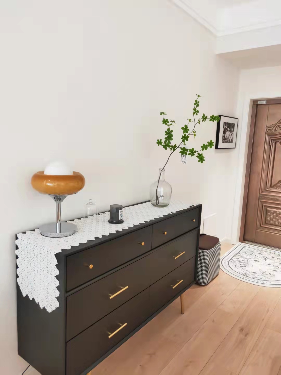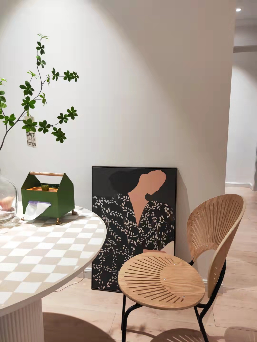 餐厅选的圆桌,比靠墙的方桌方便不少。直径100cm,坐六七个人没问题。