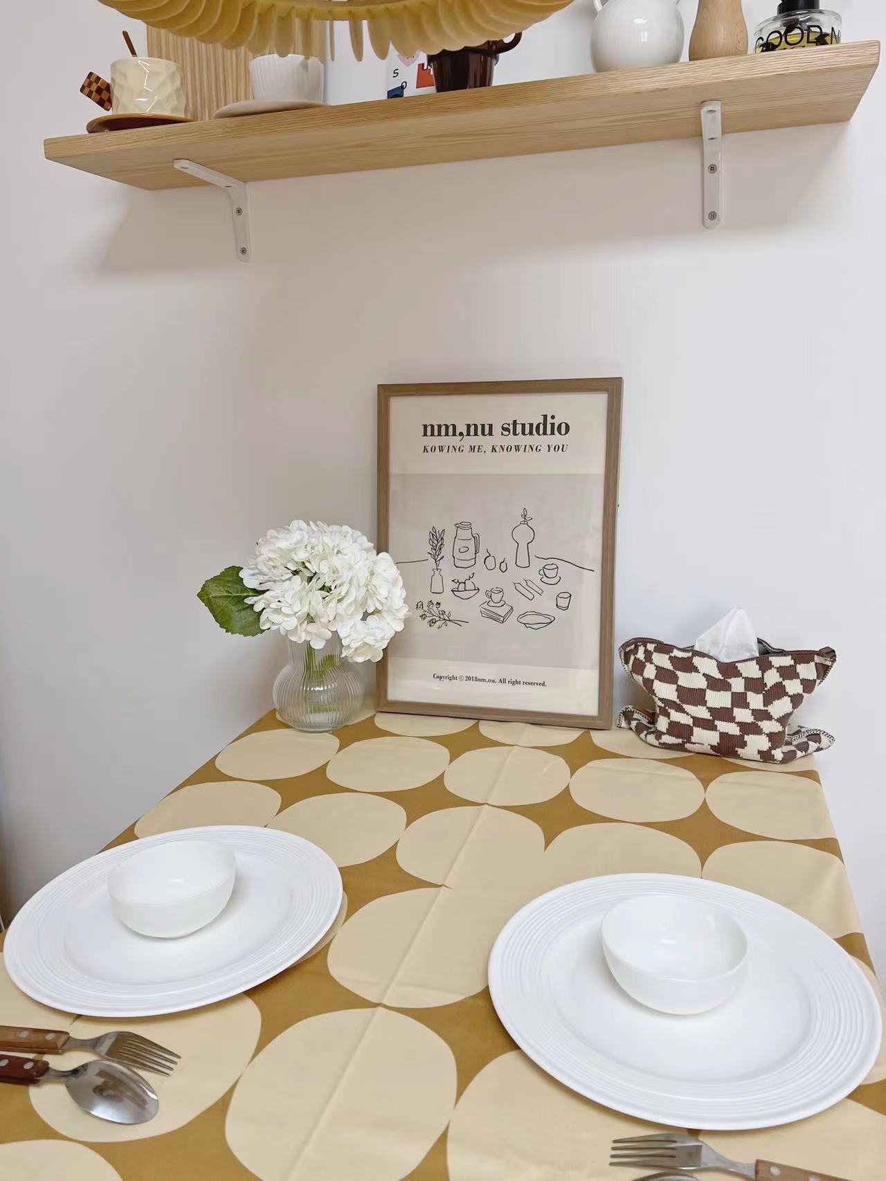 新换了一块桌布,面料是荷兰绒的,手感顺滑,还带防水性,很实用