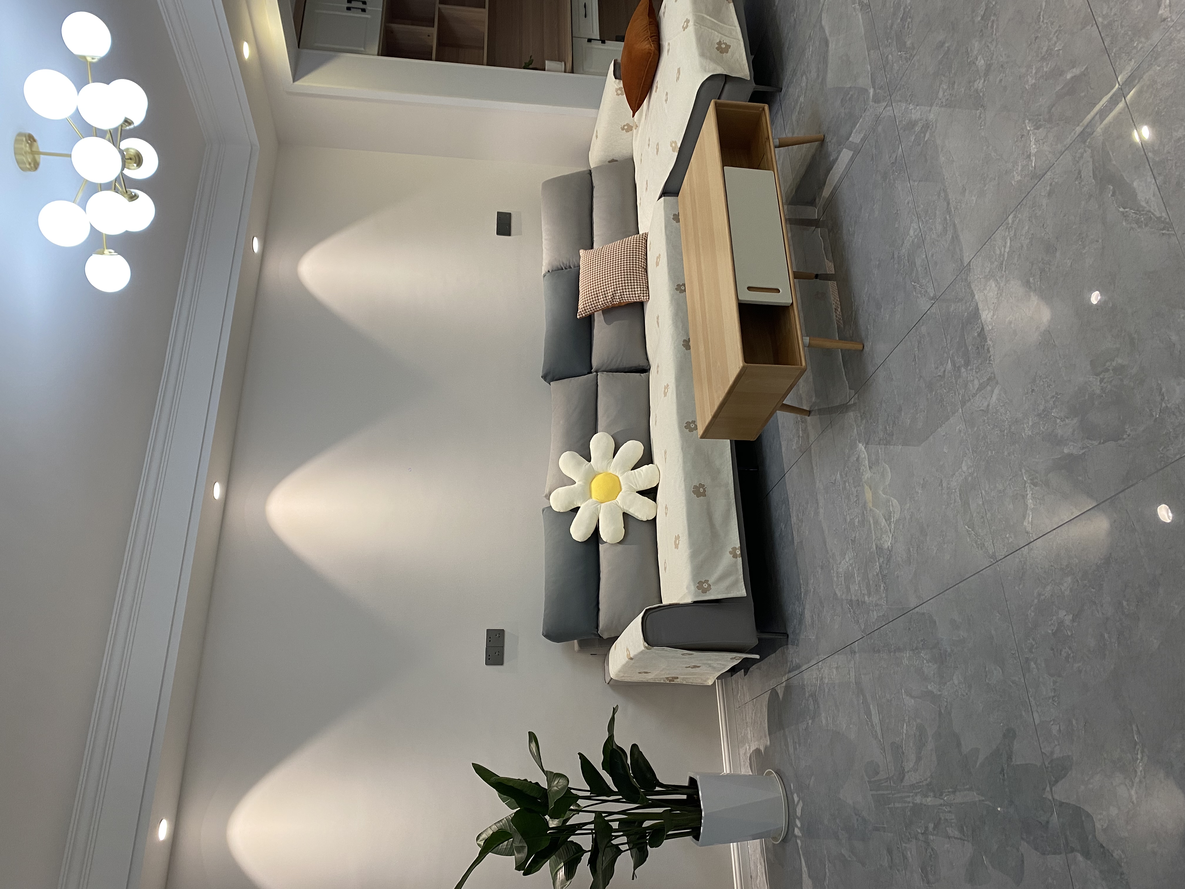 选的中灰色瓷砖,搭配原木风有点翻车,有需要的姐妹还是考虑浅色瓷砖或者木地板吧。