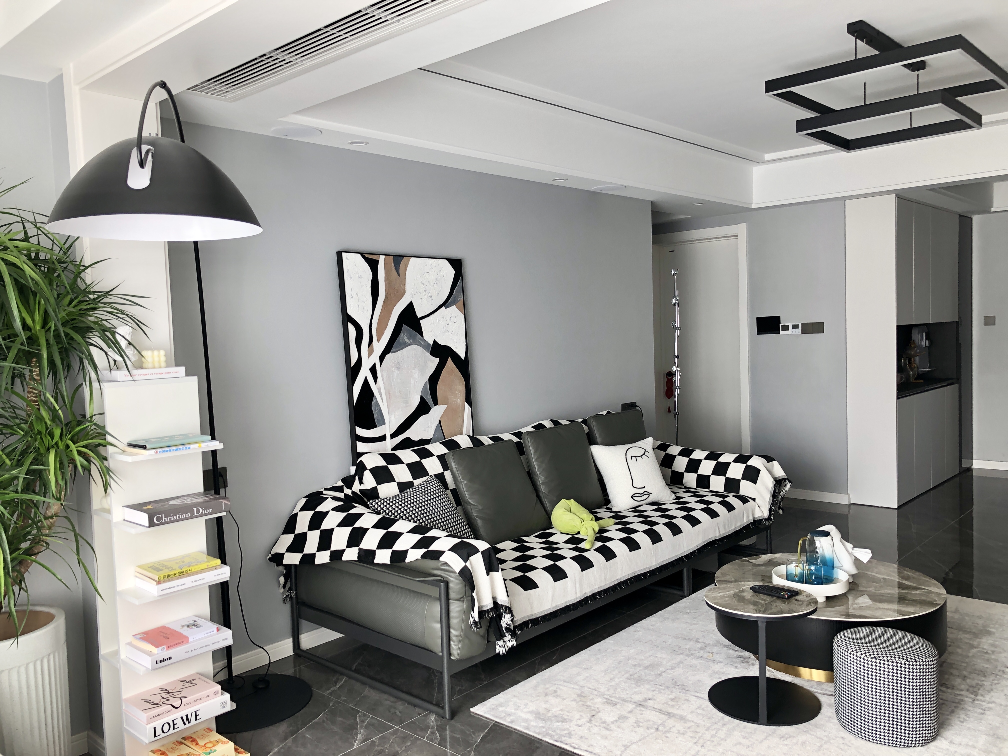 选的半包,硬装装修公司搞定,软装自己搭配的。客厅长6.6米,,宽3.8米,层高2.7米。