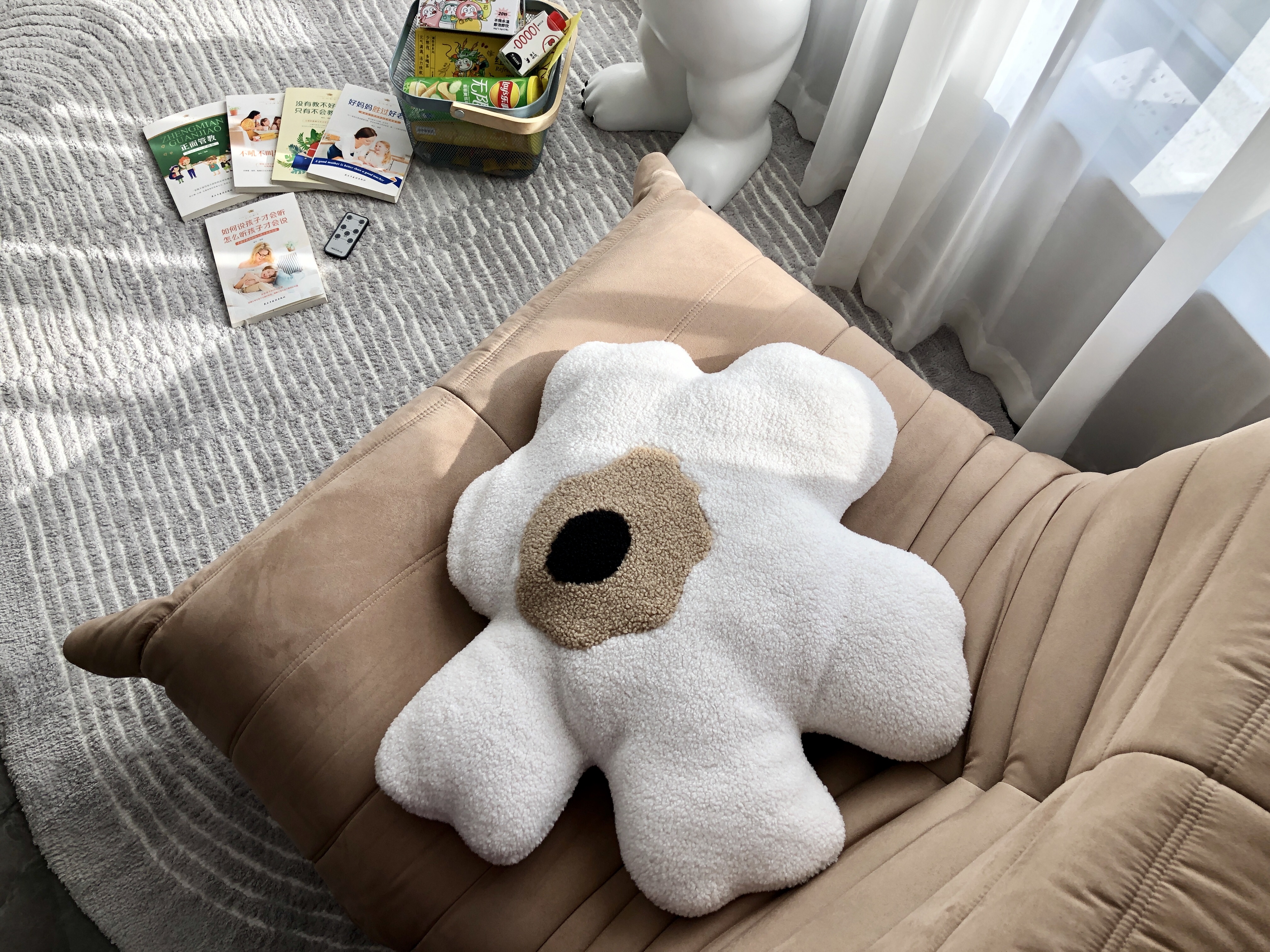 沙发是自己定制的,搭配了一款棋盘格的沙发盖巾,可以用洗衣机洗。雪尼尔材质的,也不会起球,很好打理。