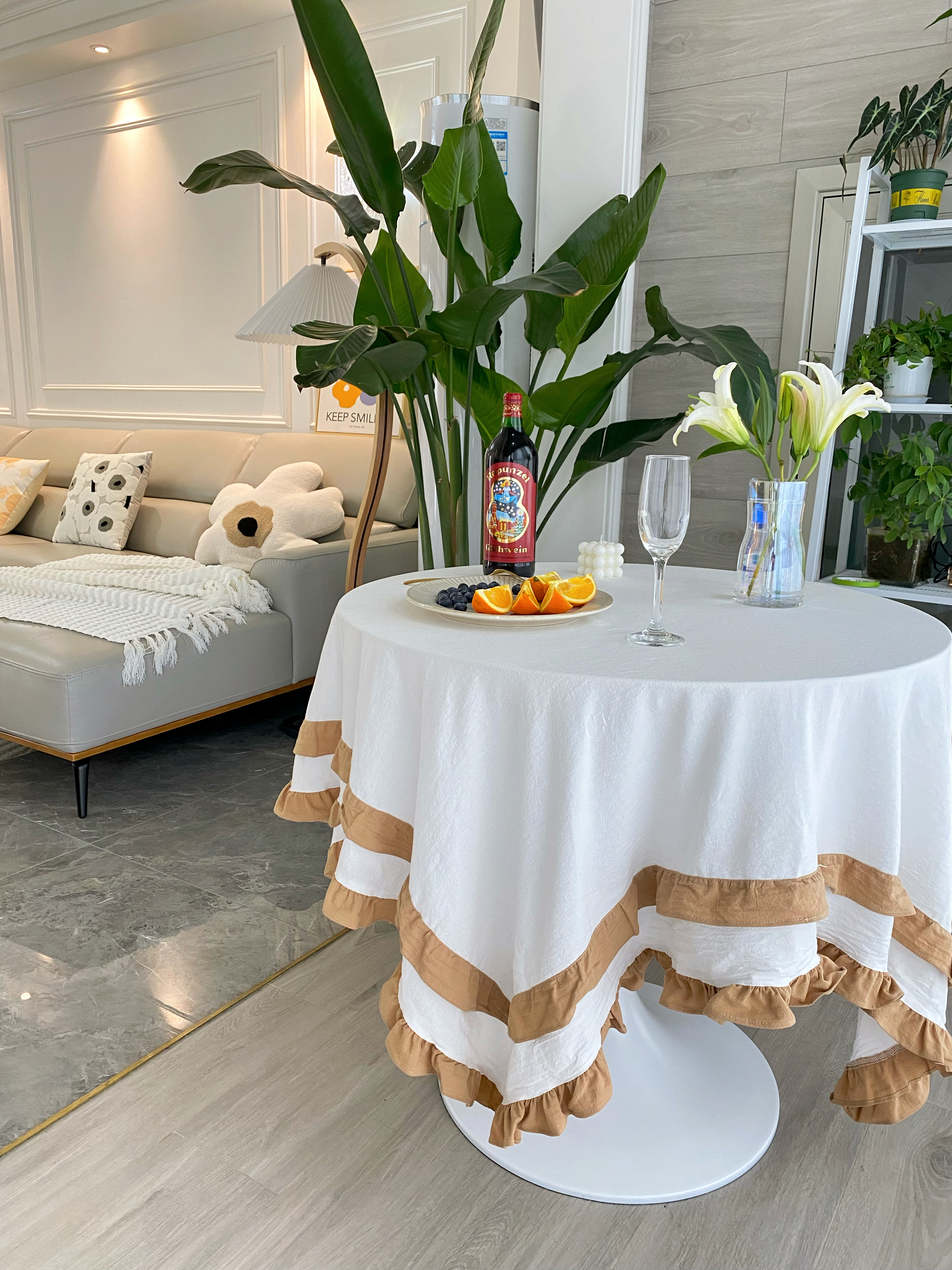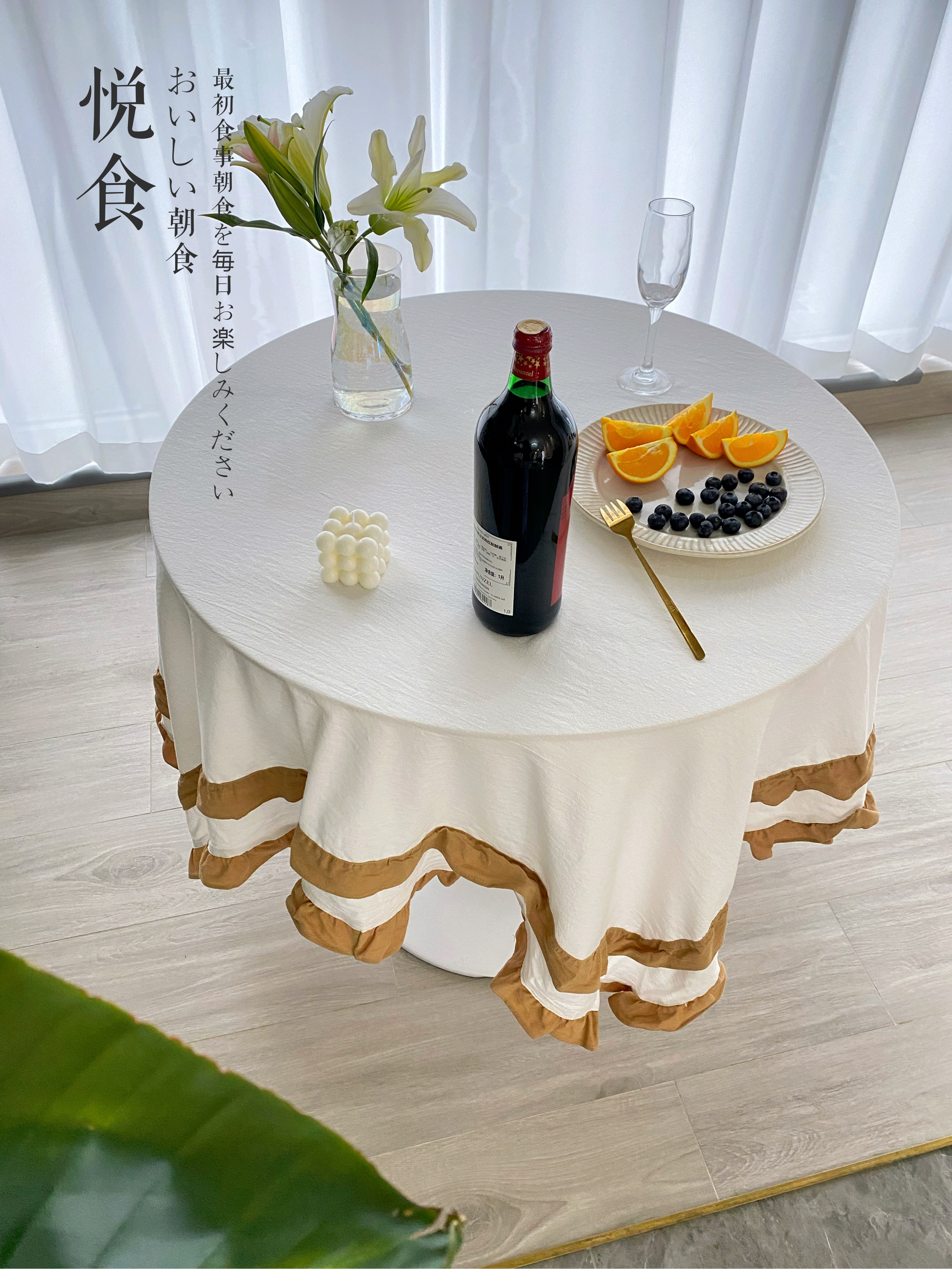 给阳台小圆桌安排了一张新的桌布,法式的设计,特别好看馨生活家居