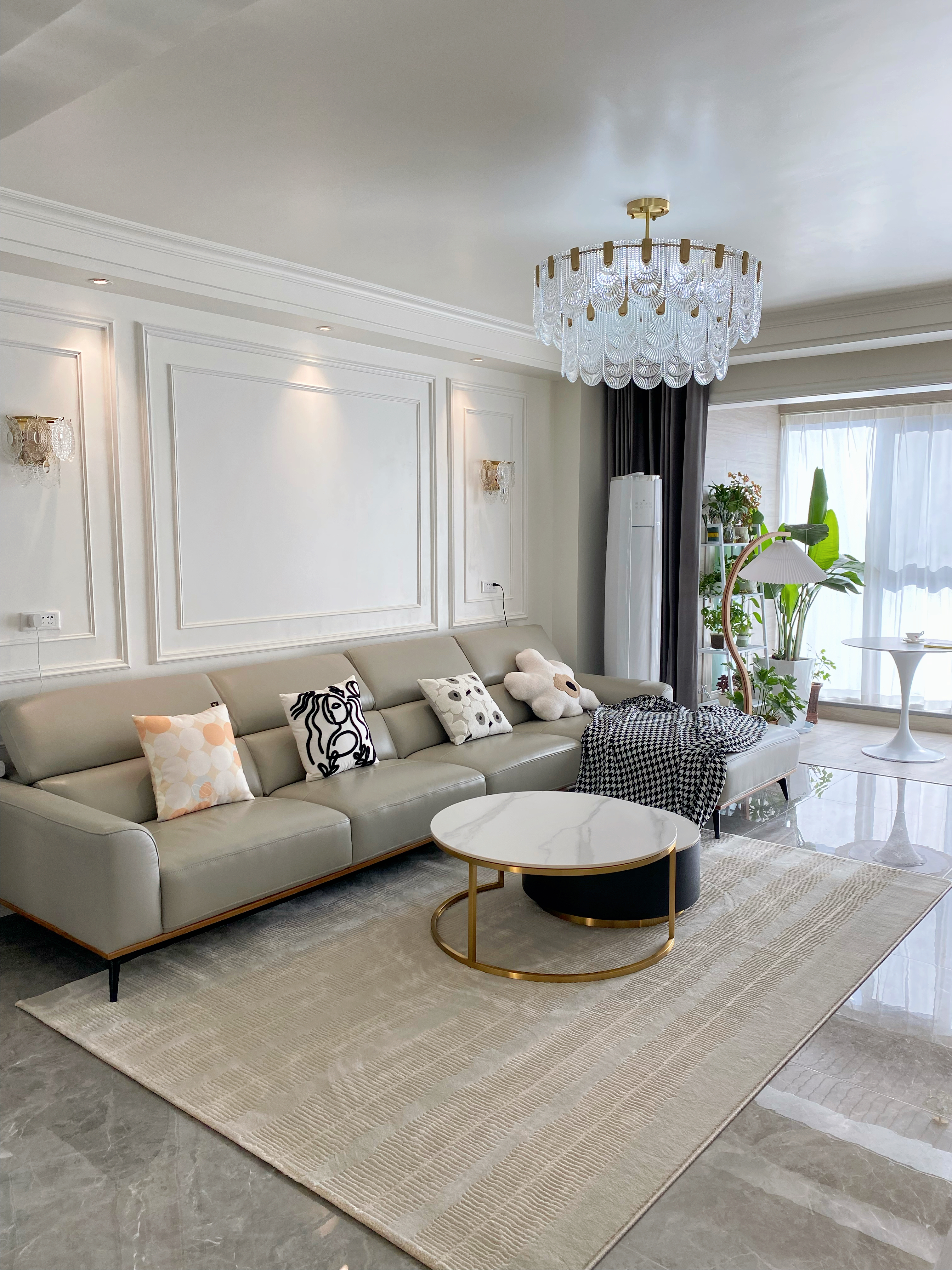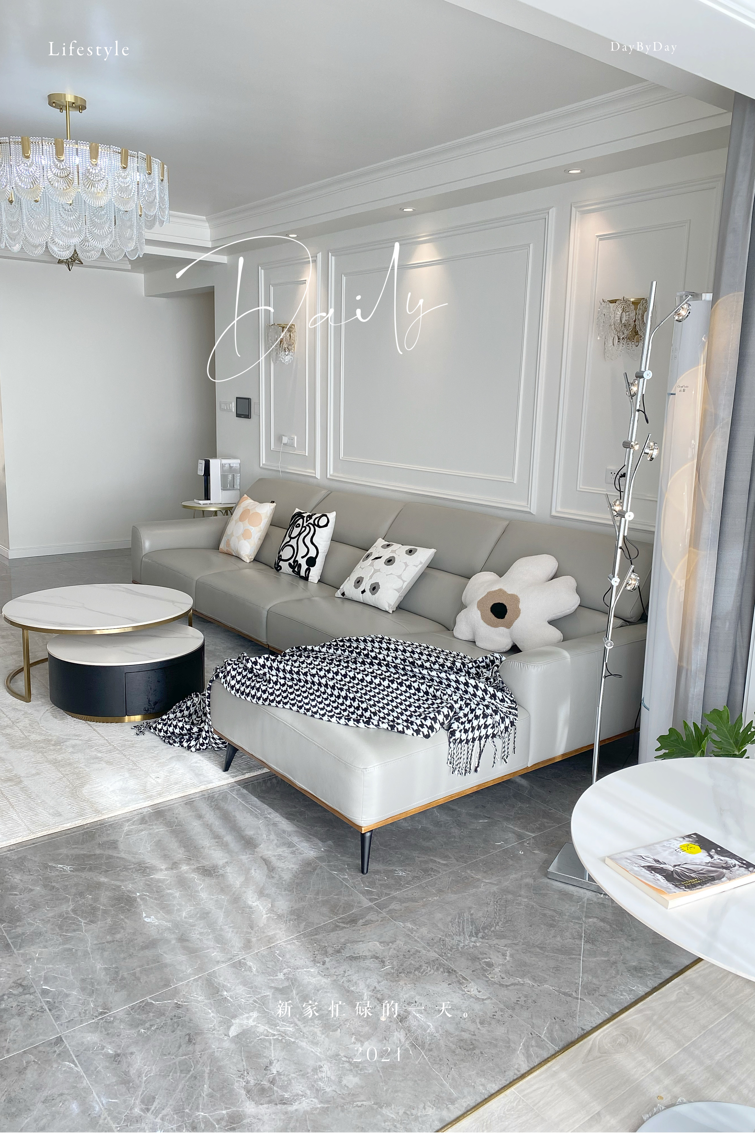 沙发长3.68m,灰色的,和瓷砖颜色很搭顾家罗马时光
