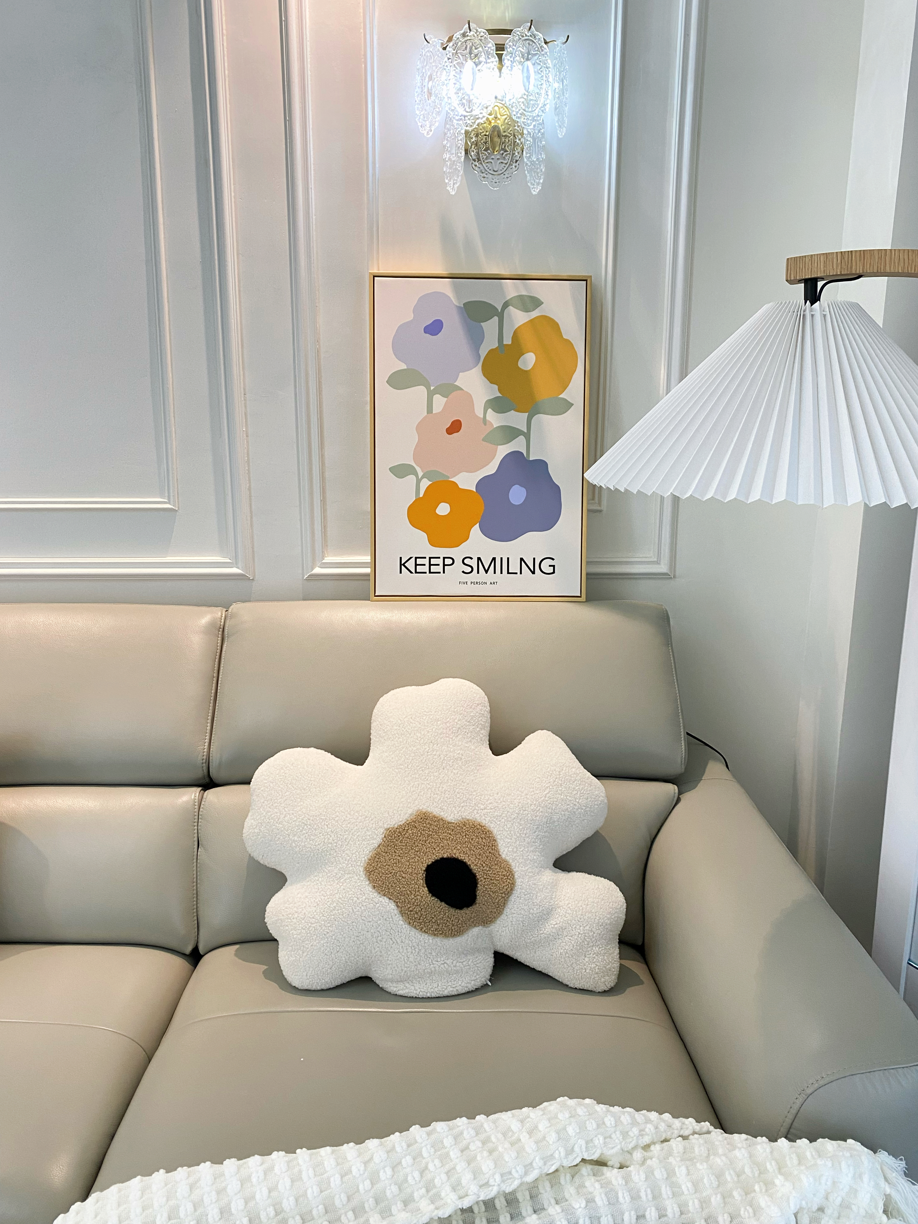 好看的沙发离不开好看的抱枕,异形的花花抱枕是近来的心头爱,很大很吸睛馨生活家居