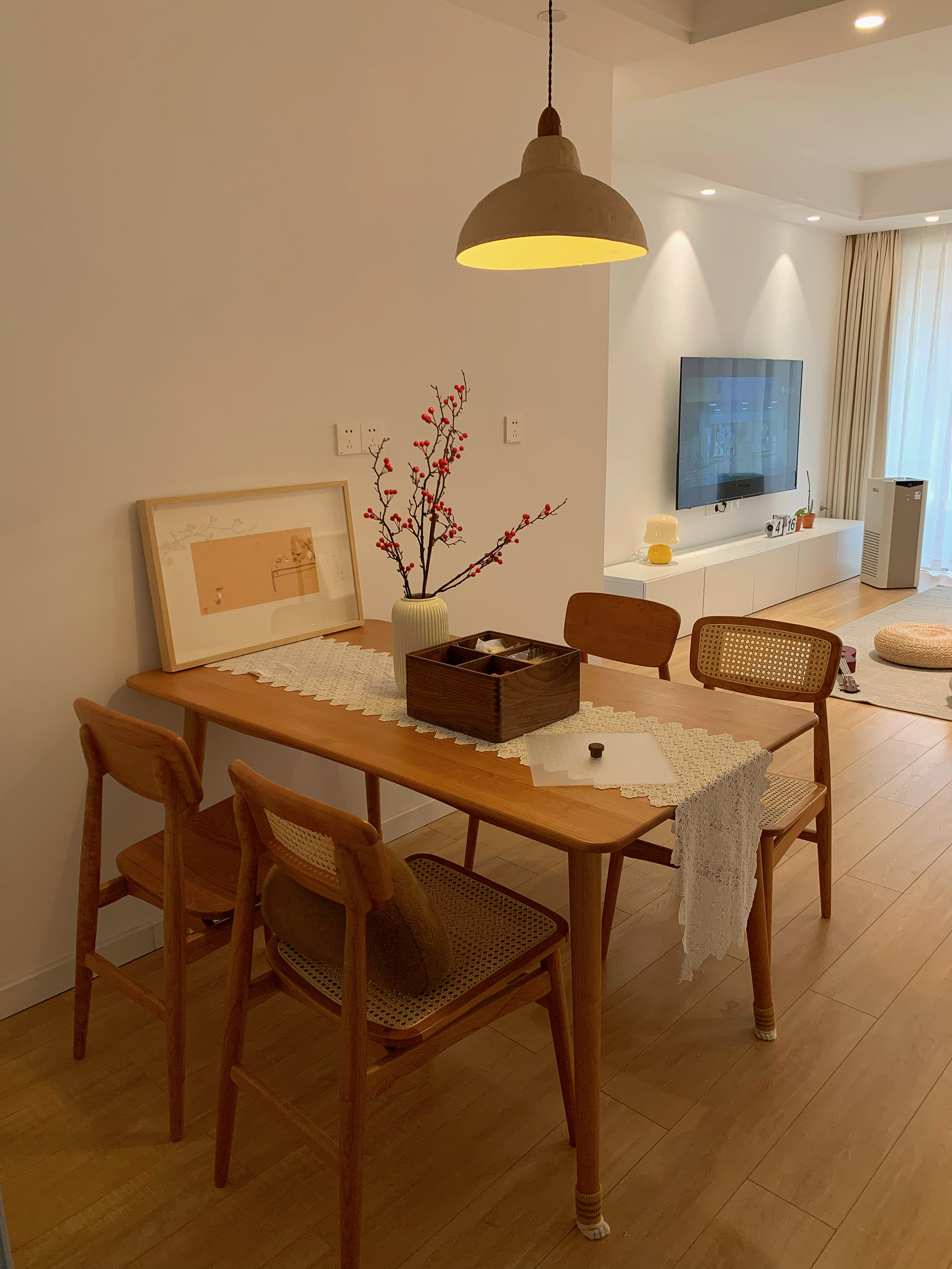 软装的选择比较简单,后期也可以随时更改。风格选择的是原木风,所以在材质上以实木家具为主,颜色选择偏清单,素色为主。