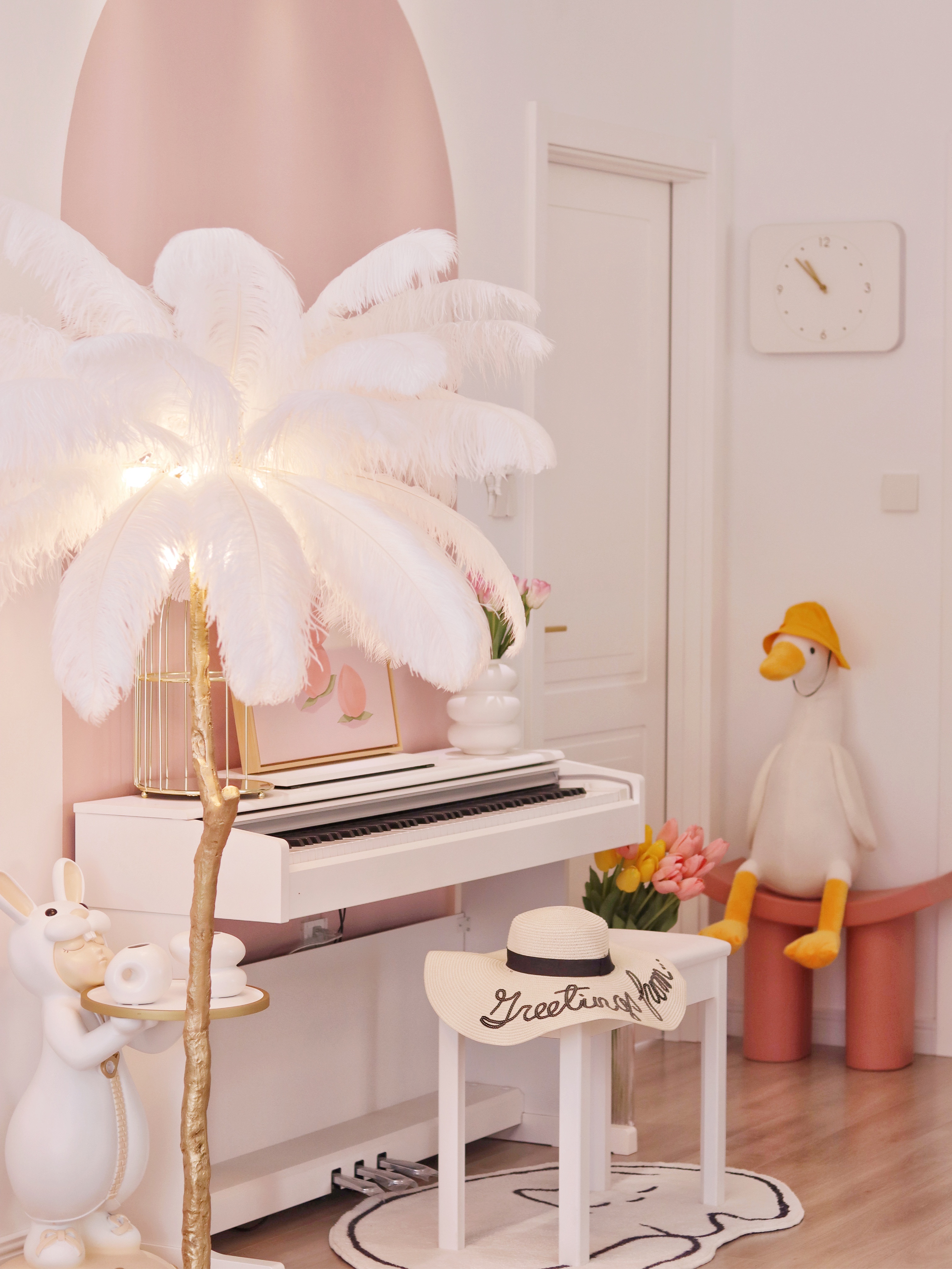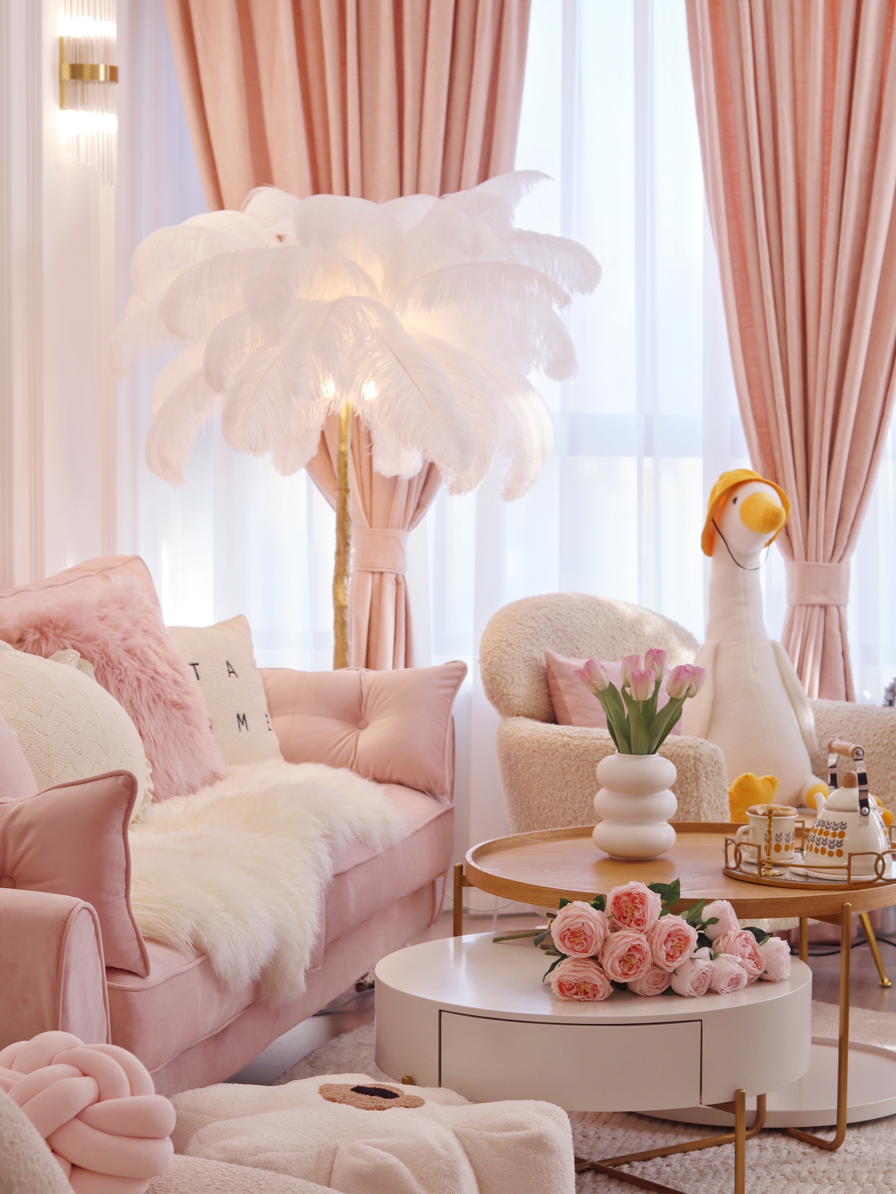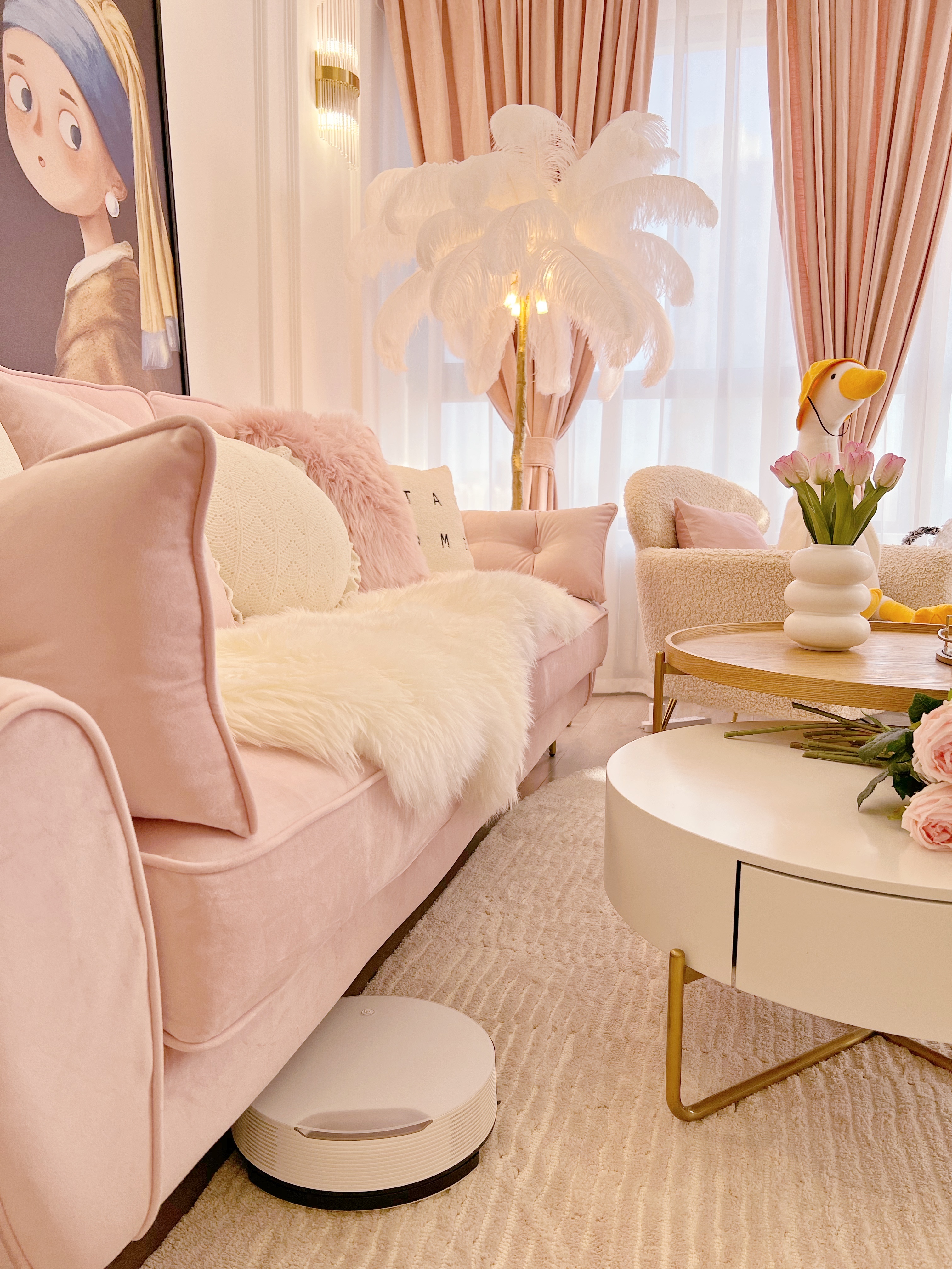 给客厅入了一个单人小坐墩,花朵造型超级可爱的。可以坐也可以放东西,坐在沙发上还可以搁脚。