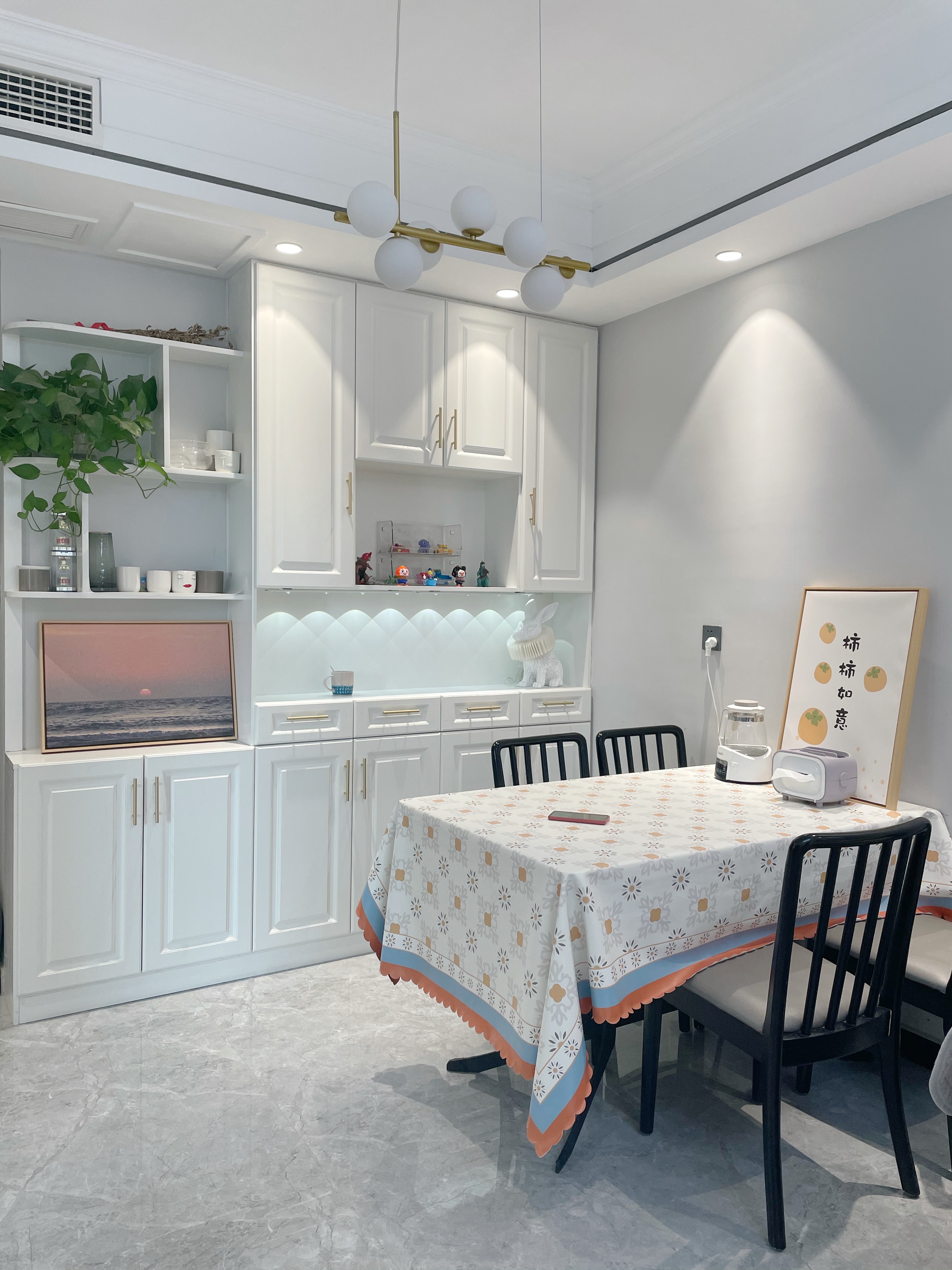 吊顶做的越简单越好,双眼皮吊顶就很立体又不藏灰。由中央空调的话,还能包住空调管,增加空间层次感。