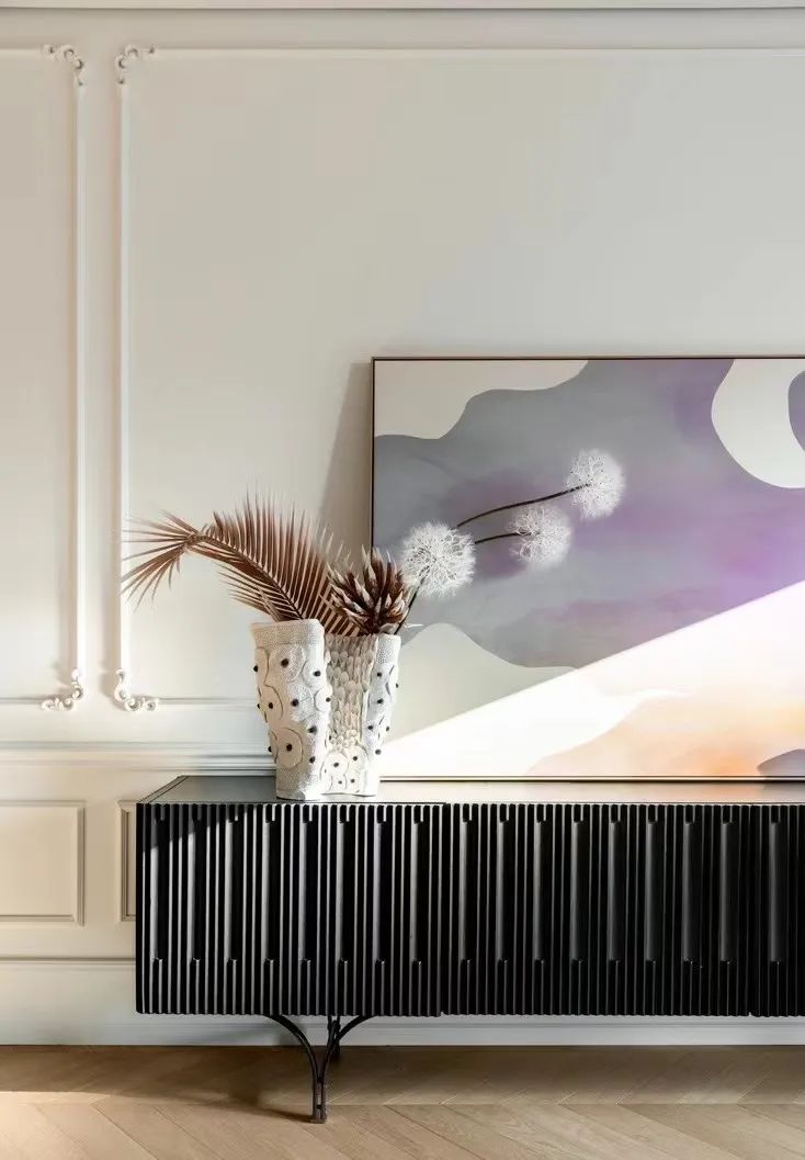 进门放置一幅抽象线条装饰画,为入户提供一丝仪式感,同时让空间层次更丰富。