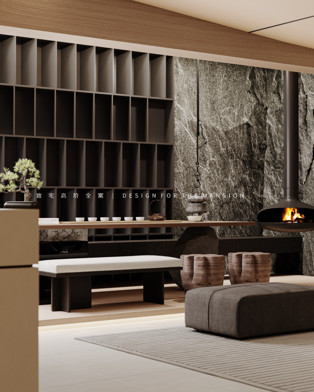 大果和毛毛都偏爱天然材质的东西,她们说这更具有真实感,甚至她们特别要求在茶台旁增加真实的火炉,冬季围炉饮茶,氛围不要太安逸。