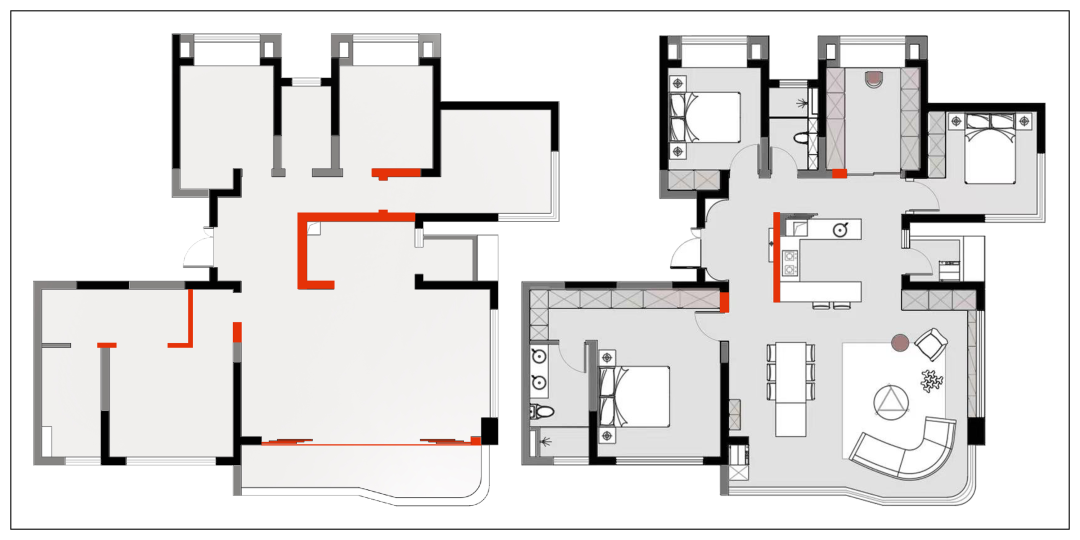 导语:△平面规划图(红色为新建/拆除墙体)本案屋主是一对创业型夫妇,新居主要是一家三口居住,由于小朋友即将升学步入初中,二…