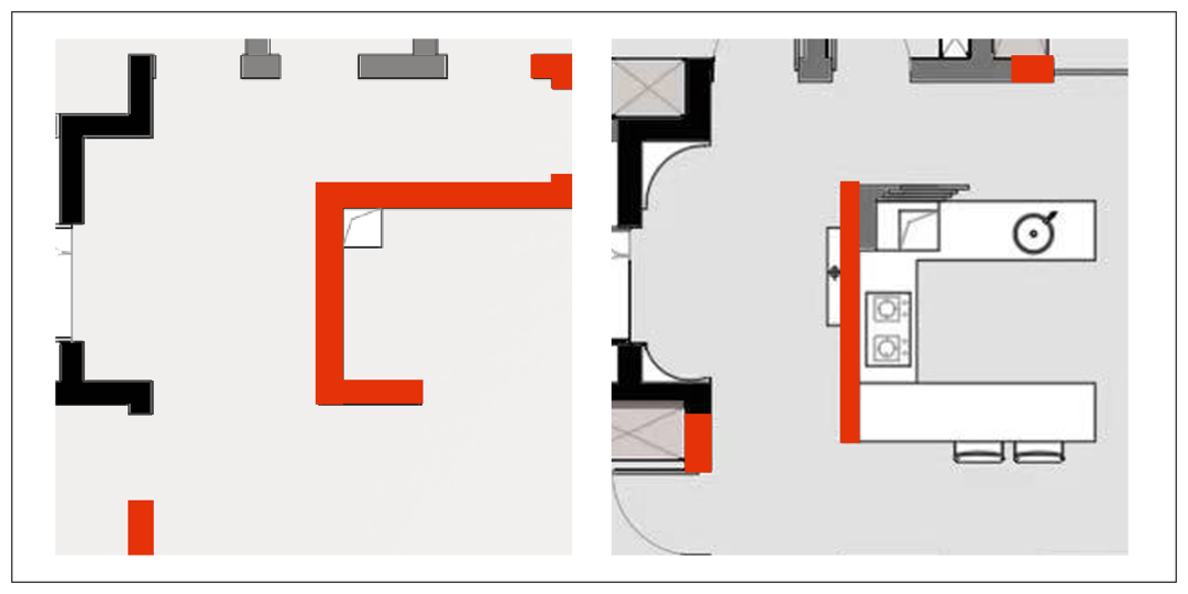 除了厨房的洄游设计,在中岛区我们同样能看到这一设计原理的运用。