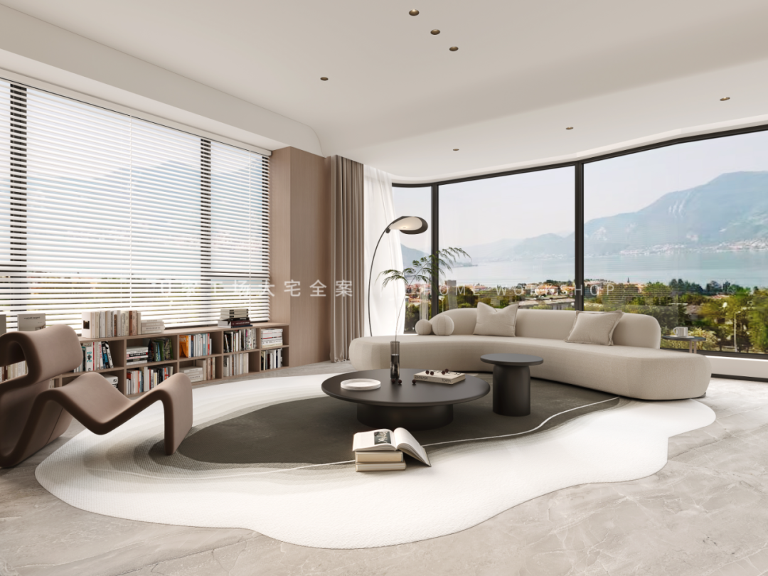 将可容纳100+图书的L型书架作为客厅活动中心,真正做到去客厅化,打造了一个“不打扰却看得见陪伴”的理想家庭厅。