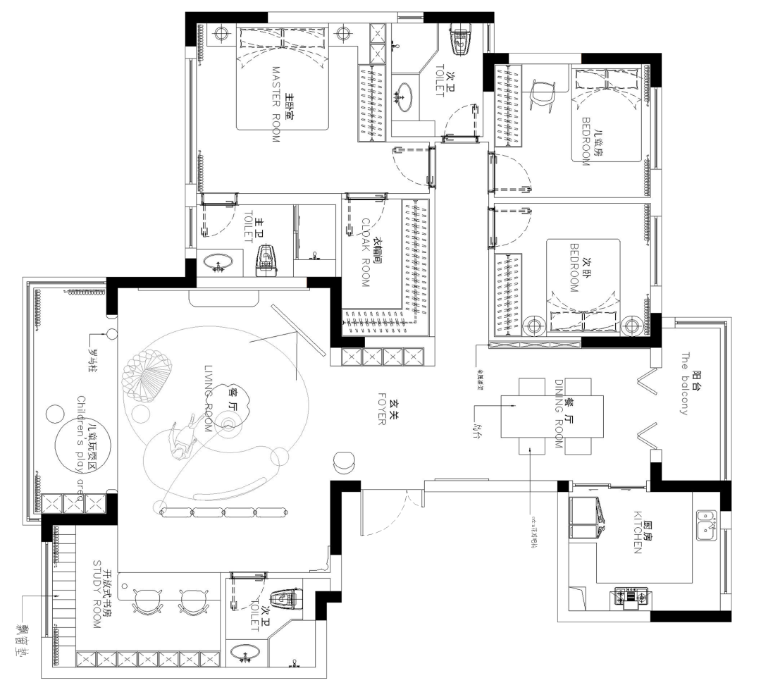 大人可以随时照看玩耍的小孩,分区独立但不影响整洁,可以说是活动区域的不二选择。