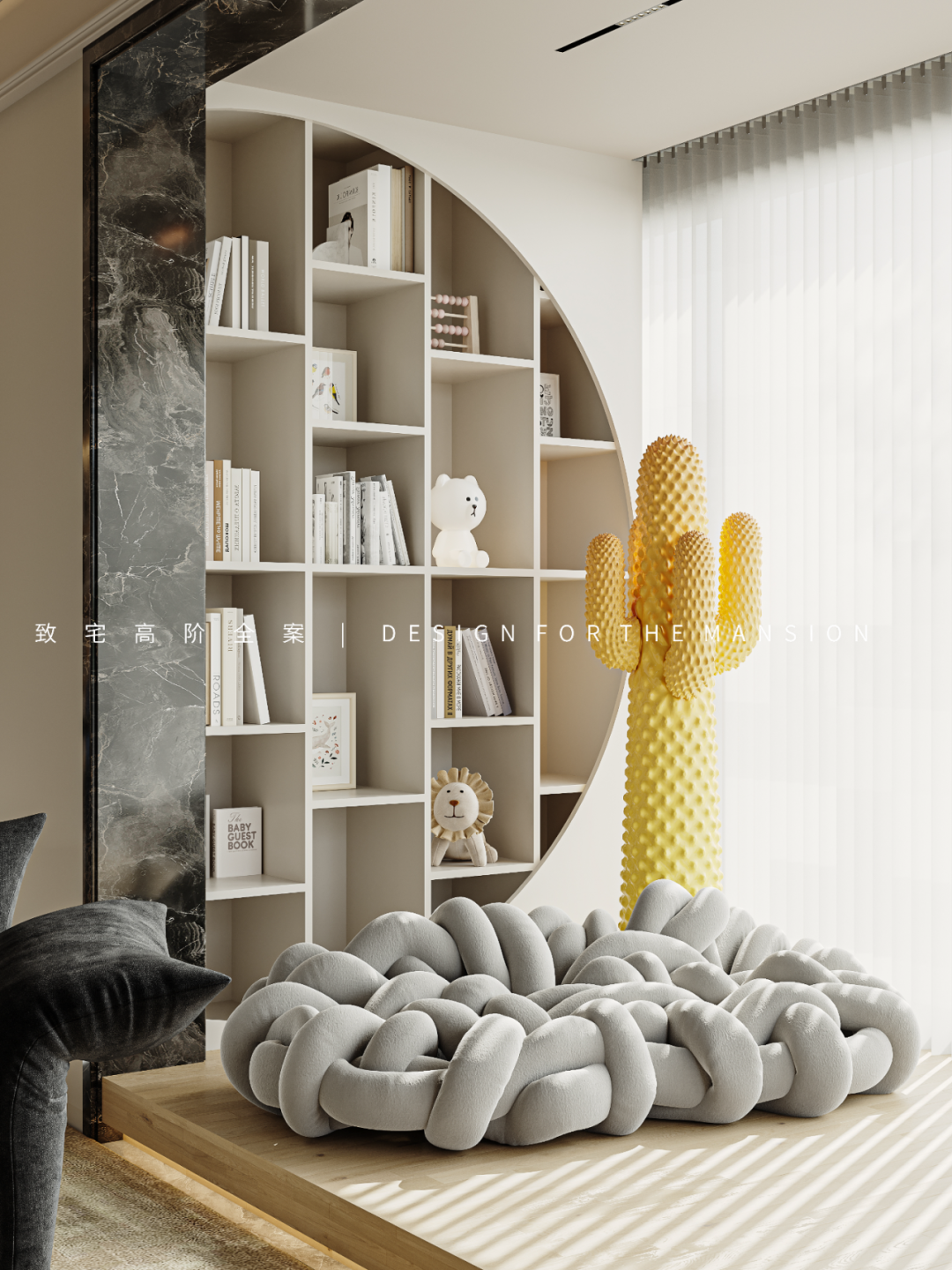 飘窗穿上定制软垫,大大的玻璃,阳光正好的时候,依靠在窗台上,感受着阳光的亲抚,看着孩子们在客厅嬉戏打闹,岁月静好正是如此。