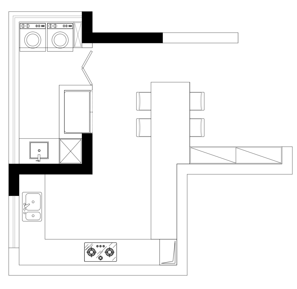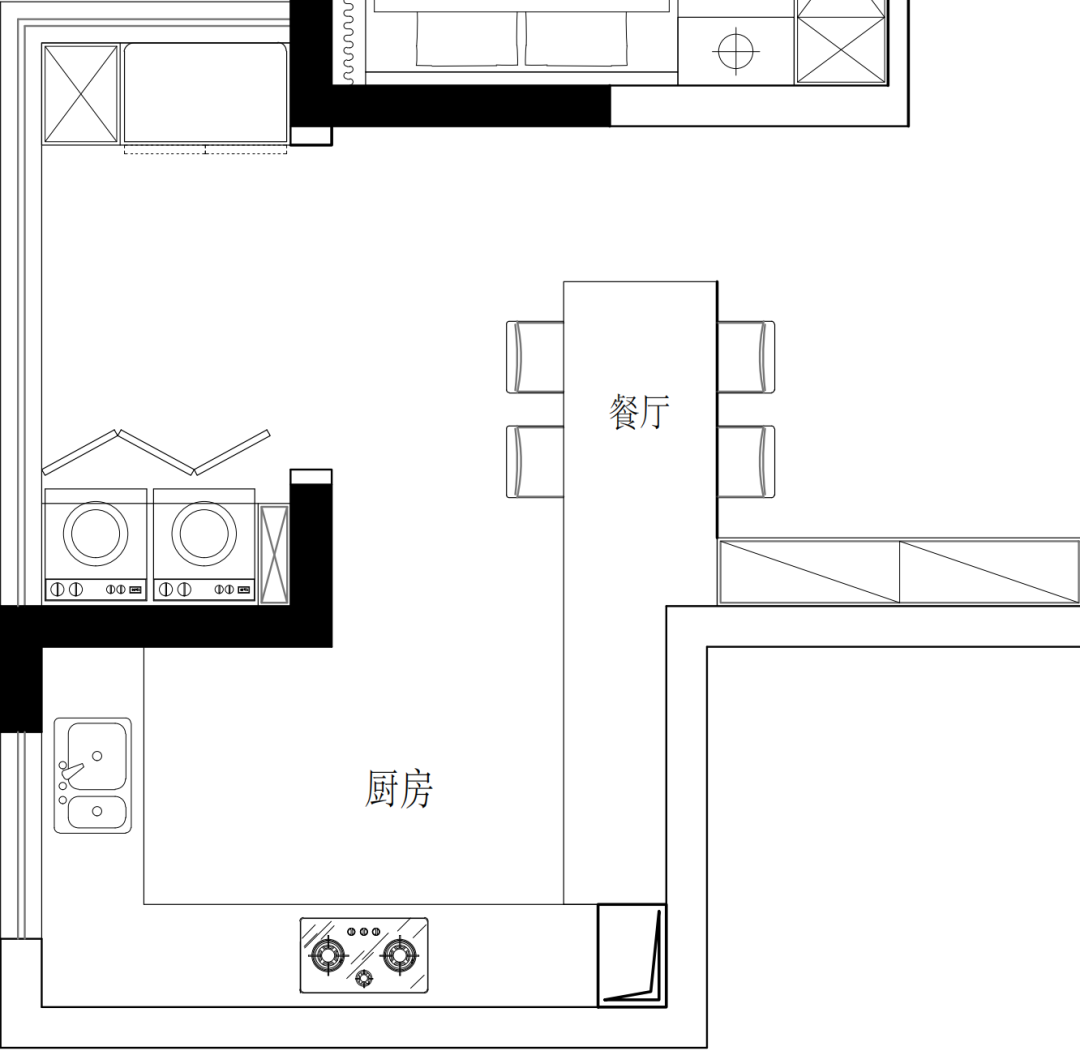 橱柜延伸餐桌效果示意