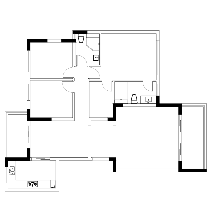 但172的三房原始户型方正空间相对宽敞,关键承重墙位于户型中间位置,可改拆范围不大,针对家庭的多样化真实需求和户型特点,我们的设计团队重点给出了两种落地解决方案。