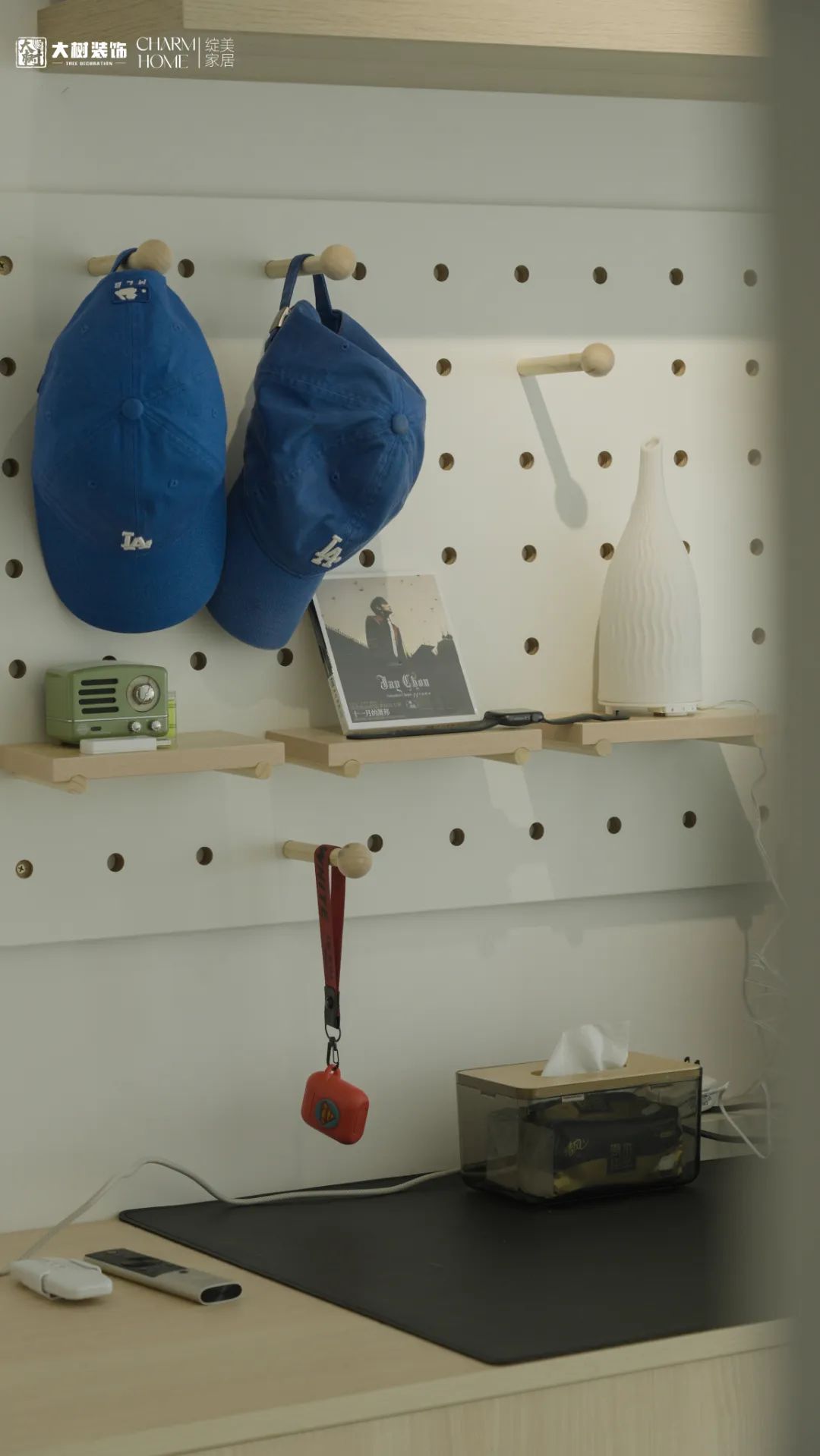 隔板+洞洞板是书房的最佳搭档,将业主的兴趣爱好完美的展现其中,可以看出业主是个不择不扣的“Jay迷”~