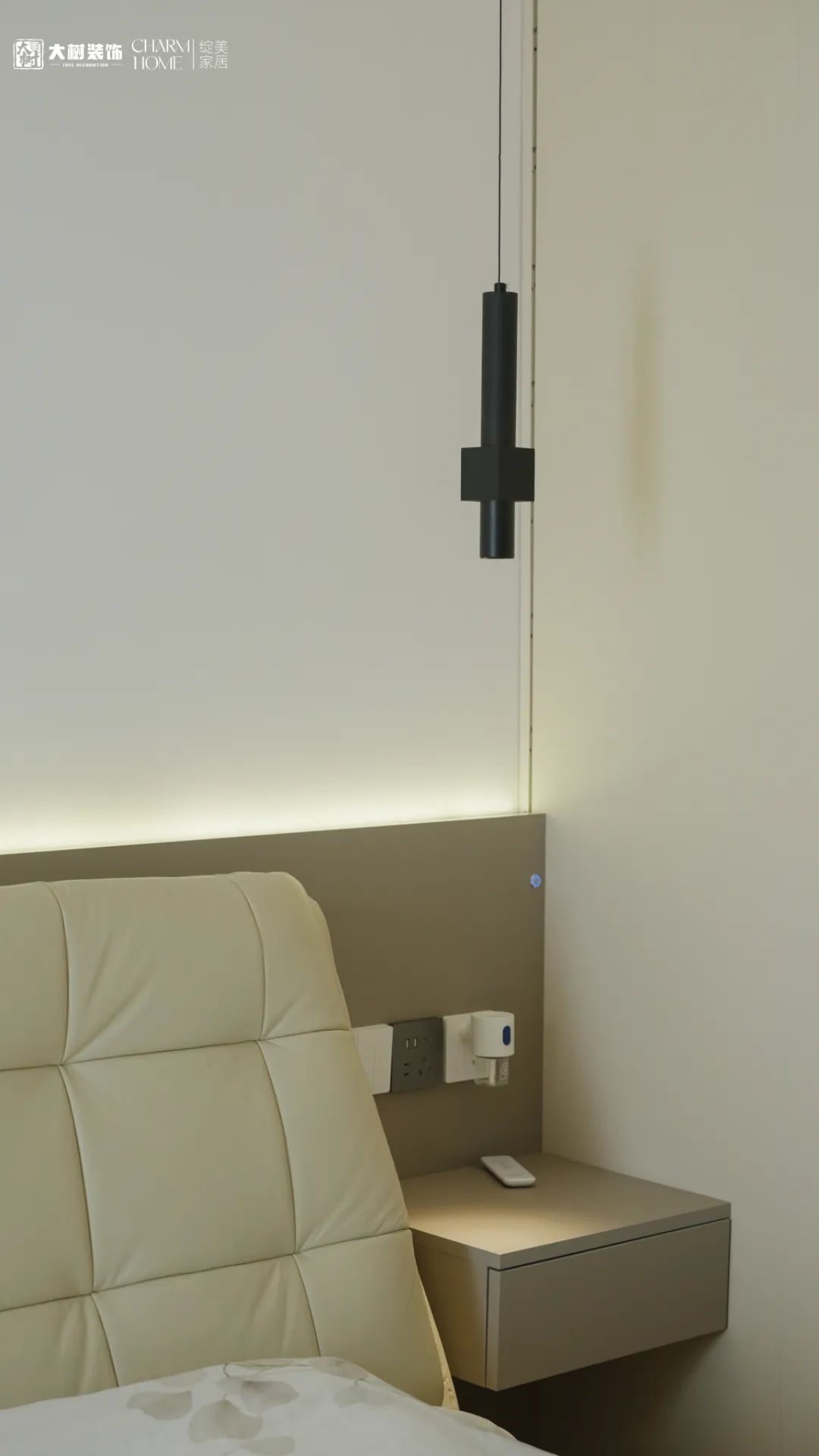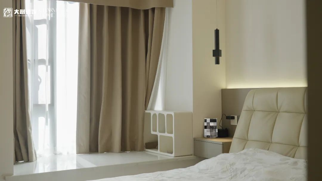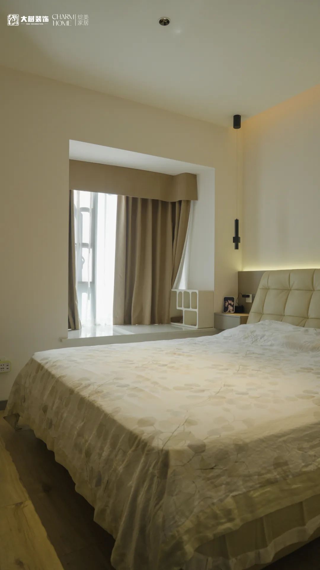 卧室整体融入更自然舒适的色度与材质,通过简约的造型,丰富其空间的层次感知,营造出惬意、松弛的休息场景。