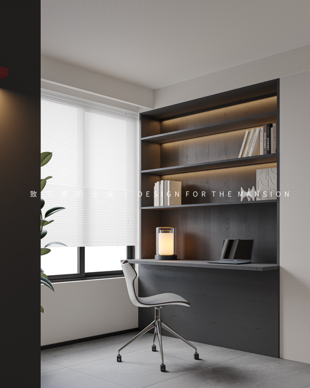 折叠门打开时,这里属于公区餐厅,是开放书房。折叠门关闭时,打开桌下的折叠床,这里也是朋友临时留宿的小客房。