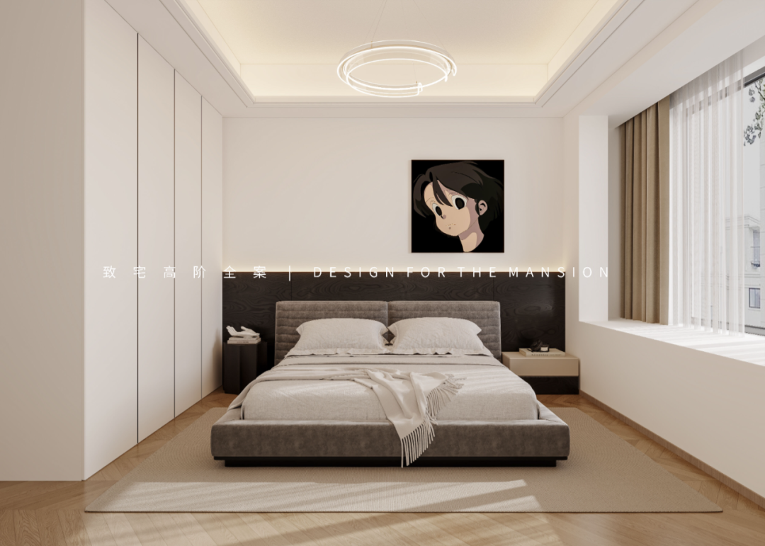 最后是灰色且富有质感的床体,每当静静躺在床上,感受周遭带来的包裹感,瞬间便能抚慰白日奔波的疲惫倦意。