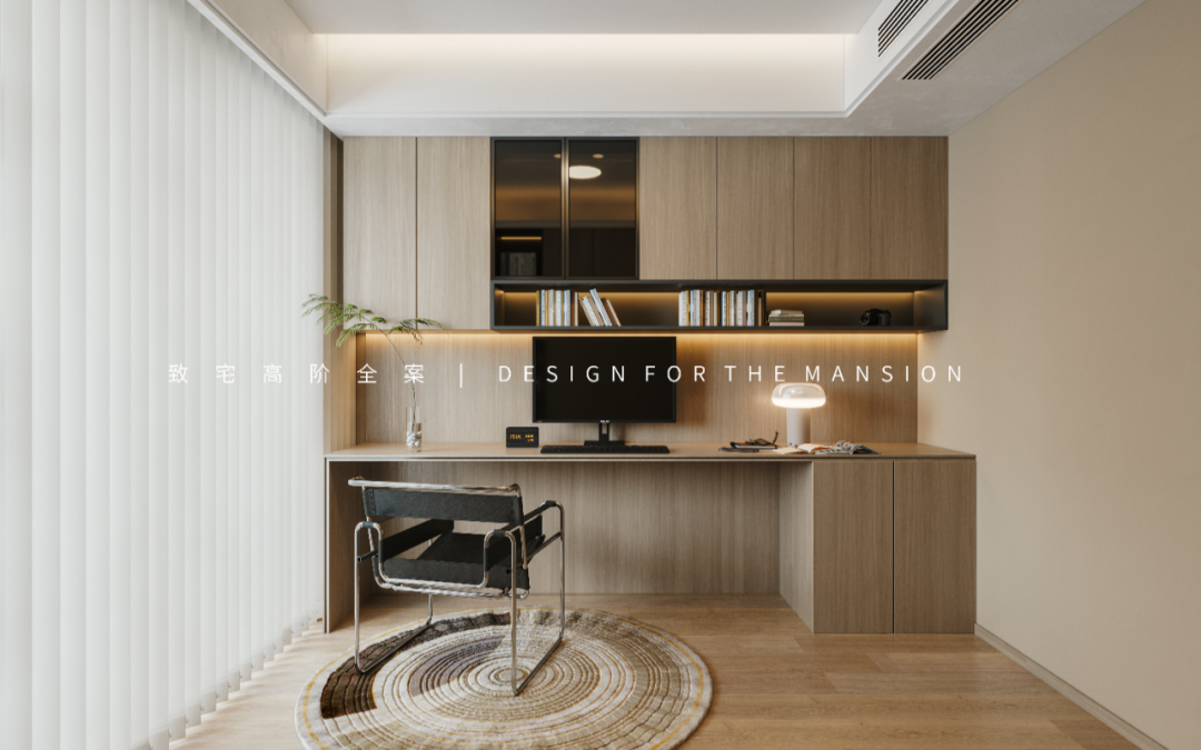 书房作为屋主工作区域,需要超强的功能性,设计师首先设置了展示区域,用于放置画册等物品,其次是置物功能,考虑职业因素在右下方定制了可以放置摄影器材的恒温保险柜,美观与实用性都能完美兼顾。