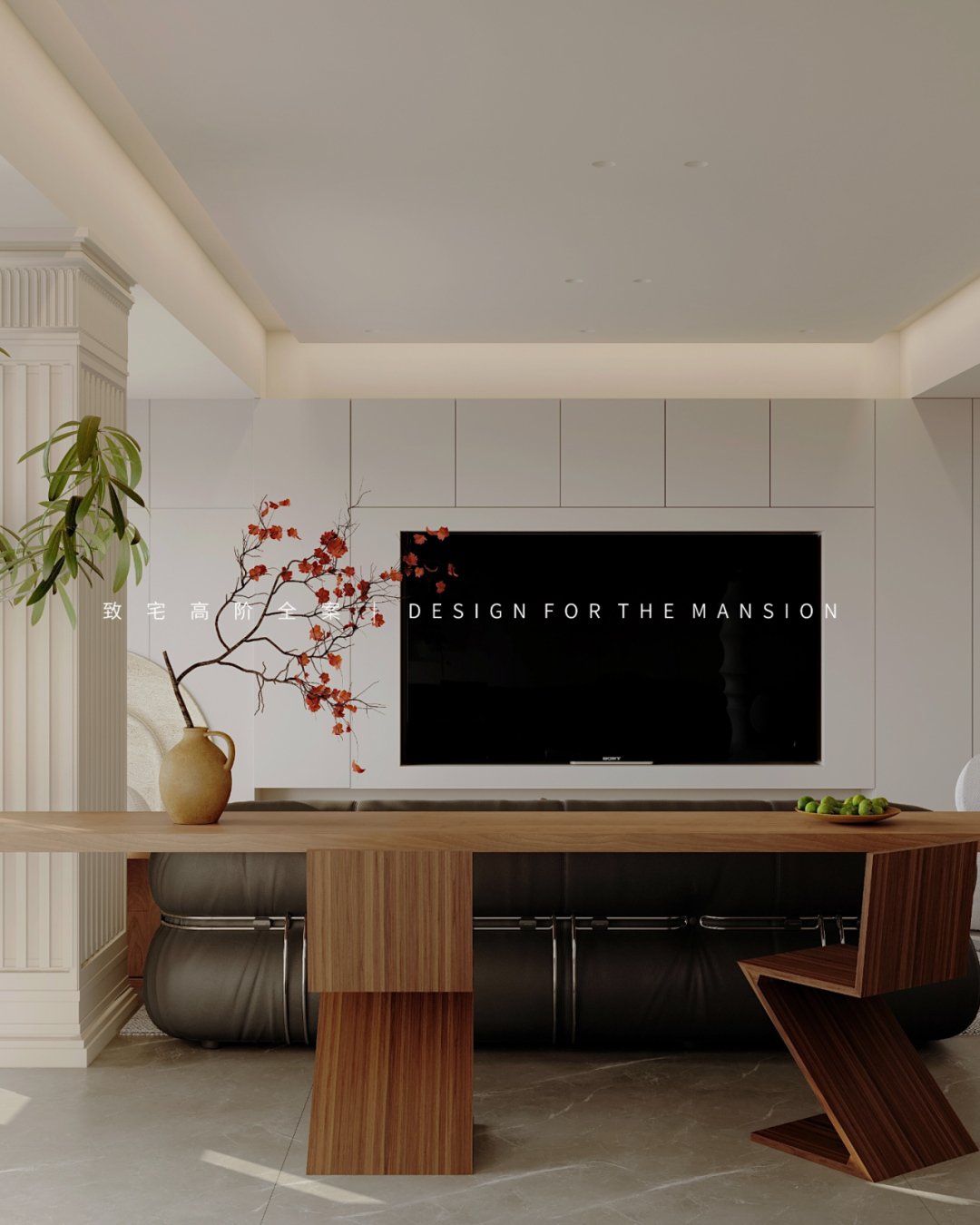 在屋主看来,客厅是与家人、朋友围炉而坐最能让人感到舒适与放松的地方。为最大程度享受阳光带来的慵懒感,满足公区收纳需求,设计师将阳台与客厅整体打通,打造了一个视野极佳的落地窗。