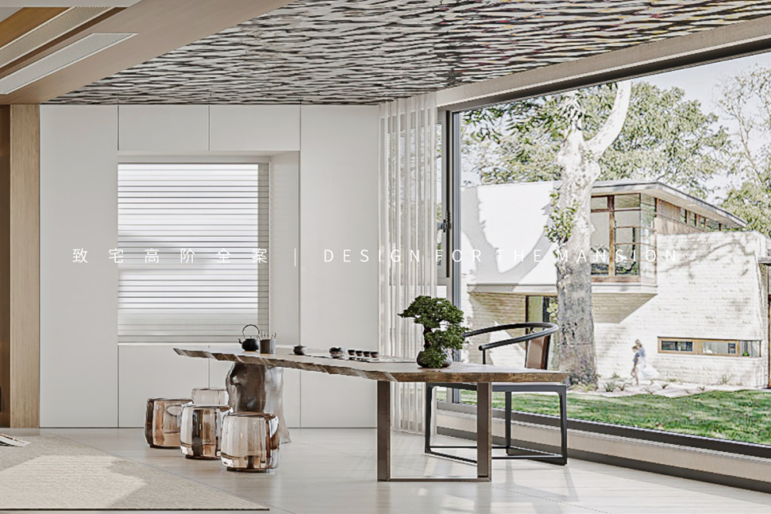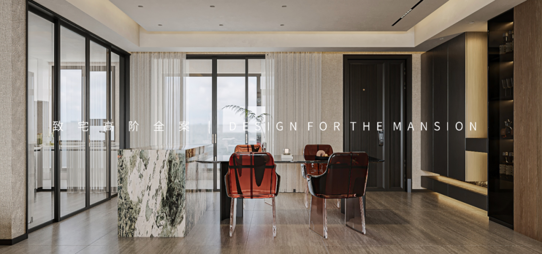 了解屋主家庭情况与房屋现场情况后,在精装房已有的基础上,通过不同材质的运用和空间元素的搭配,打造真正意义上的景观大宅。