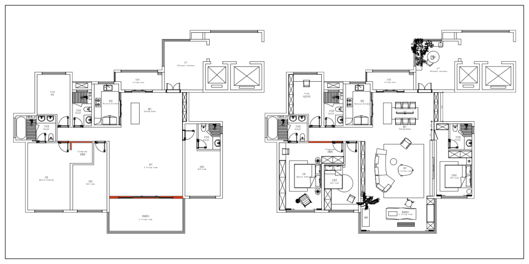 本案屋主希望保留书房,后期更改为电竞房,所以选择了第二版方案。