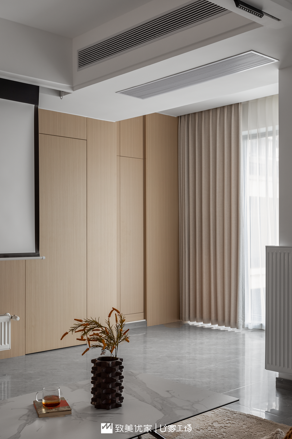 ❶ 入户玄关柜体缩短做不到顶设计,让整个入户空间开阔通透。