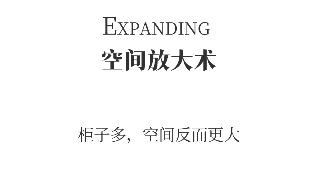 一家四口对全屋的收纳要求都很高,我们能看出每个空间的柜体都很多,对夫妻二人来说,主卧整排的衣柜主要收纳当季衣物,而过季衣物则考虑放在主卧对面的衣帽间。