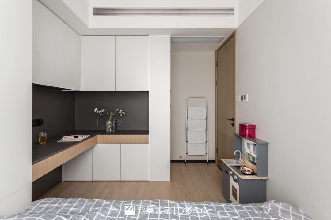 利用飘窗后的房间变得比较宽敞,现场完全感受不到只有10个平方,显大的同时还兼顾了颜值和实用,这是小户型儿童房都可以借鉴的点。