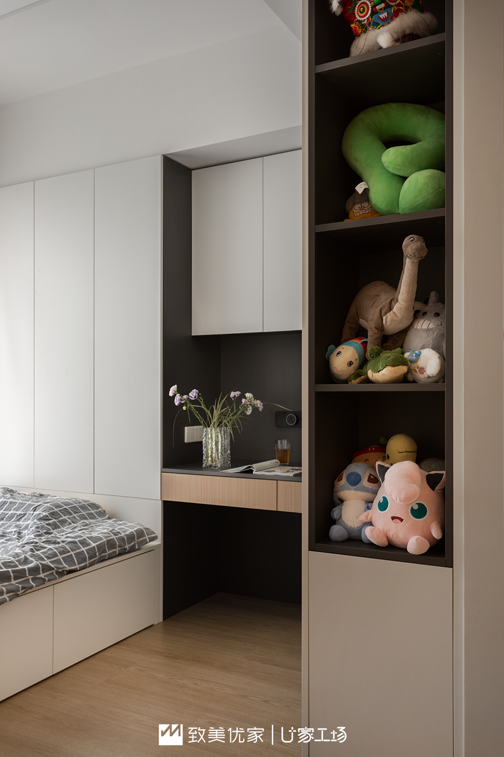 屋主对于儿女的儿童房设计非常重视,两个儿童房面积都比较小,只有10㎡,为了更好的利用空间,两个房间都进行了榻榻米考虑。