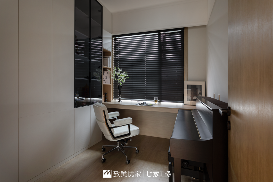 同时这个房间也可作为书房和钢琴房使用,是一家人的多功能共用空间,同时也是相互陪伴的美好场景。