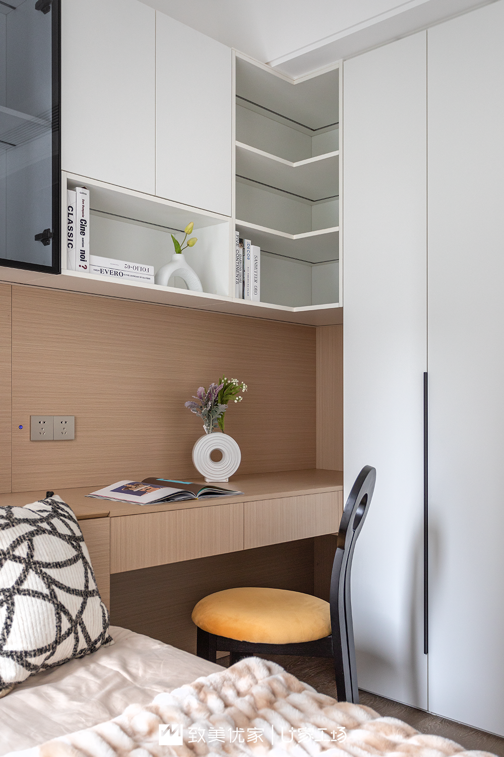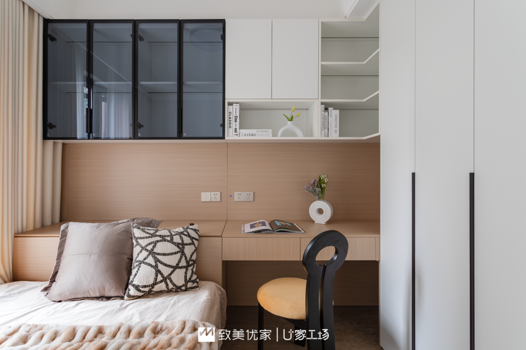 ➎ 女儿房床+桌+柜一体化定制,收纳空间翻倍。