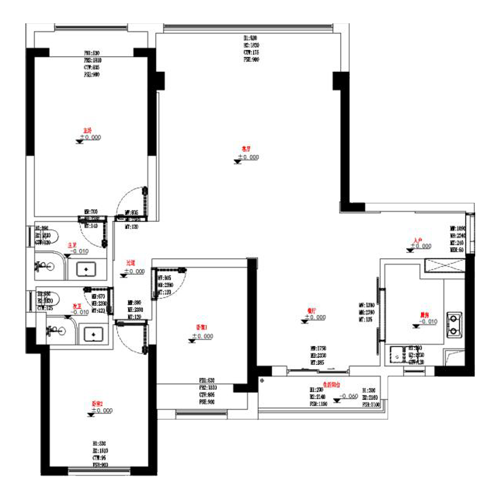 ❶ 景观阳台封窗,纳入客餐厅区域,增加可使用面积;