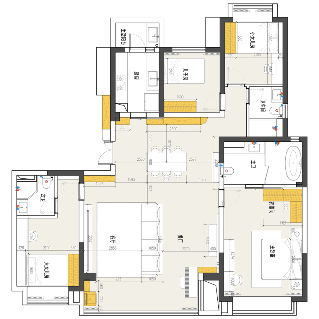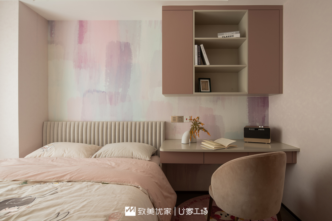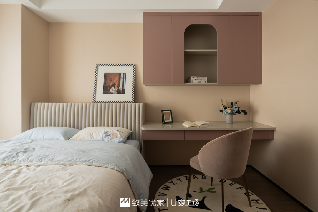 因为是多娃家庭,屋主夫妻希望让孩子感受到爸爸妈妈平等的爱,两间女儿房在布局和风格上基本统一,根据她们的个人喜好,稍有变化。