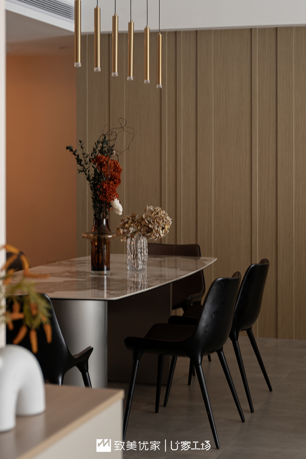 搭配展示柜+一门到顶的组合形式,储物的同时延伸了空间的通透感,在光影的陪伴下,让就餐成为了享受高品质生活的一部分。