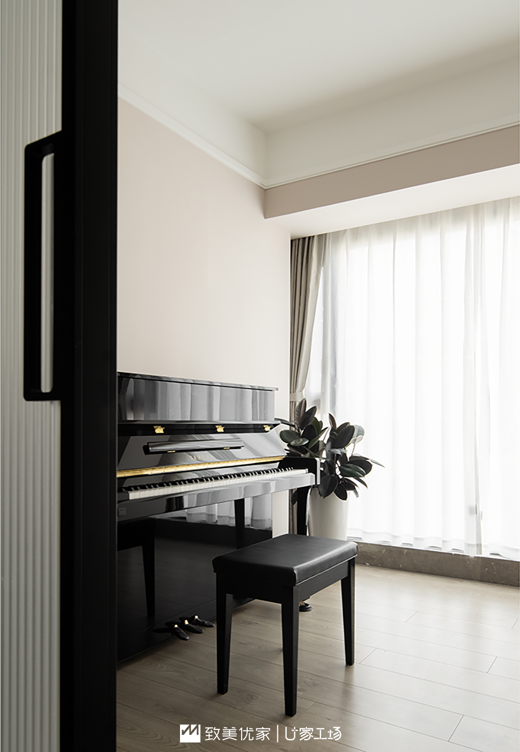 ❸ 琴房门洞改向至走廊方向,空间场景更为私密独立。