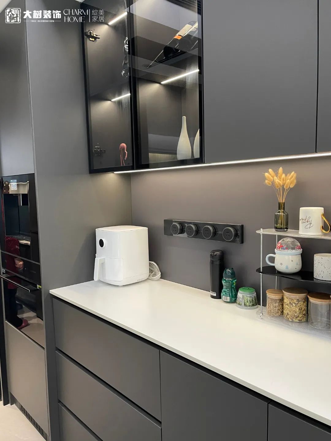精心挑选的岛台餐桌+西厨与厨房里应外合,完美解决了厨房的空间的弊端,完善了客户需求。