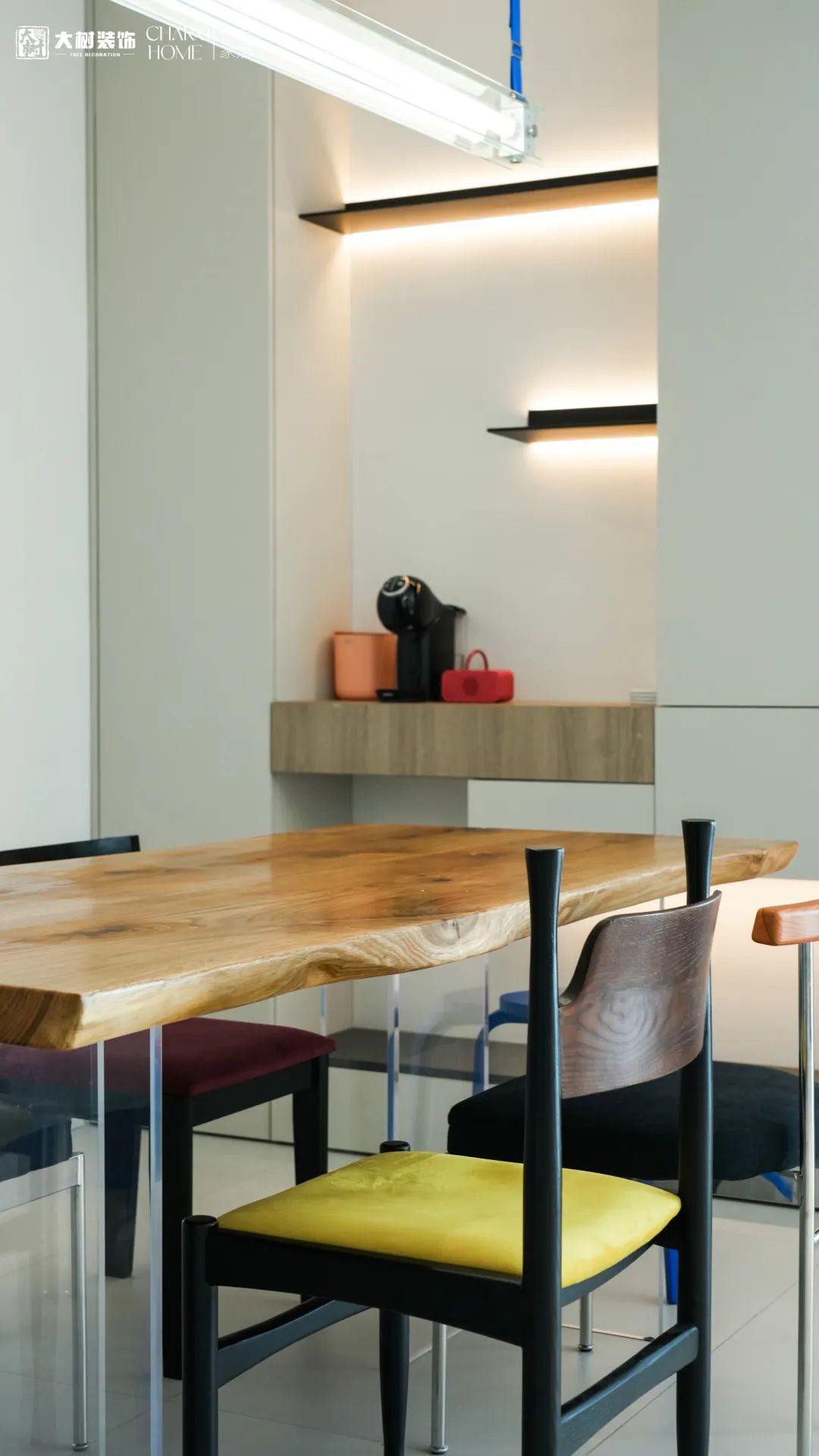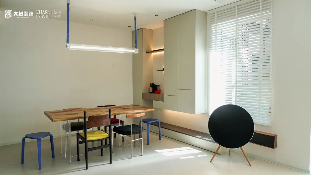无墙阻隔、无柜体堆叠的客餐厅,赋予自由的交互场景更舒适、流畅的“通透呼吸感”,既可以是一家人的家庭影院,也可以是陪伴孩子的娱乐空间。